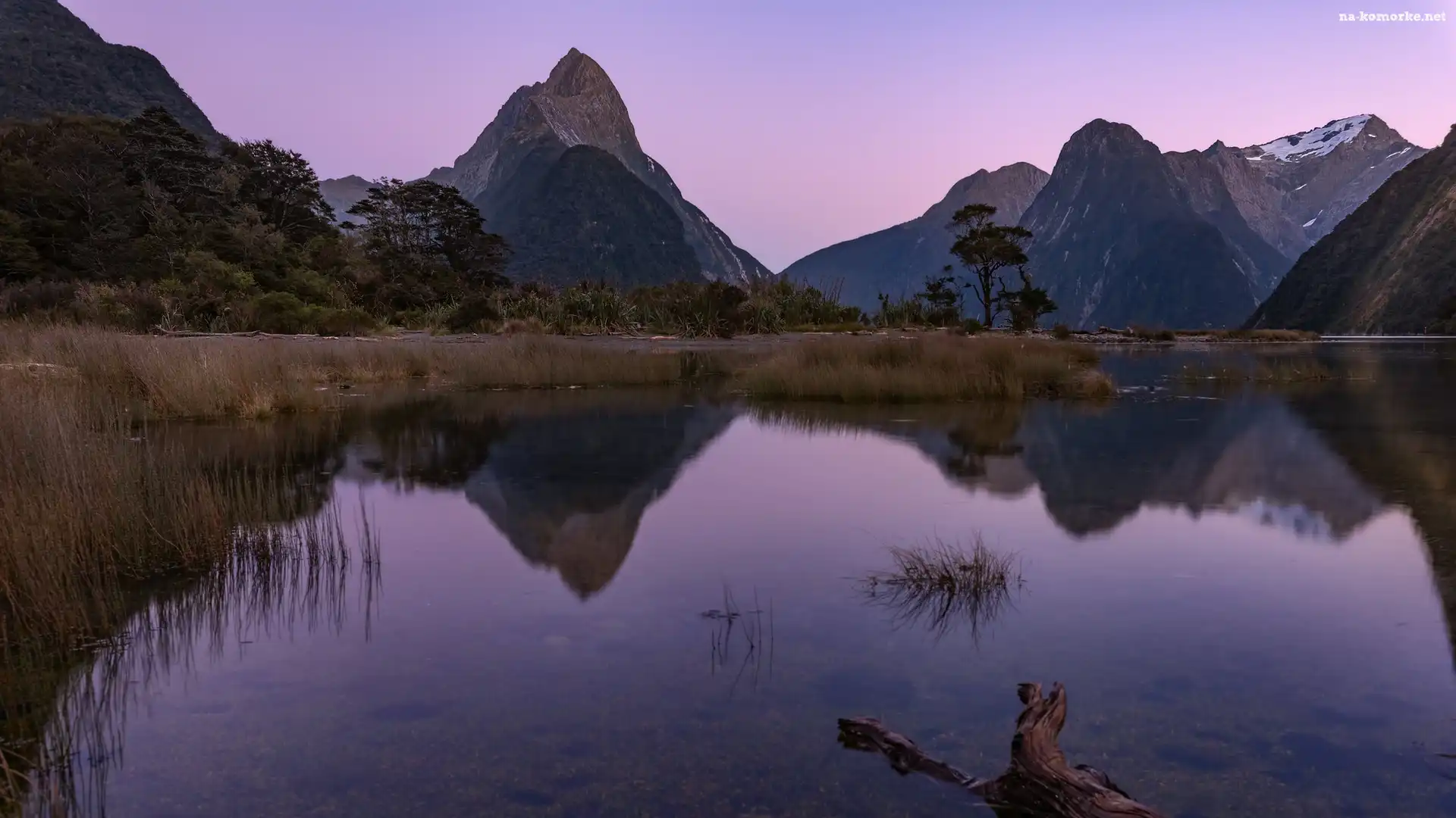 Zatoka Milforda, Alpy Południowe, Nowa Zelandia, Góry, Wyspa Południowa, Park Narodowy Fiordland, Fiord Milford, Góra Mitre Peak, Odbicie, Konar na Komórkę |