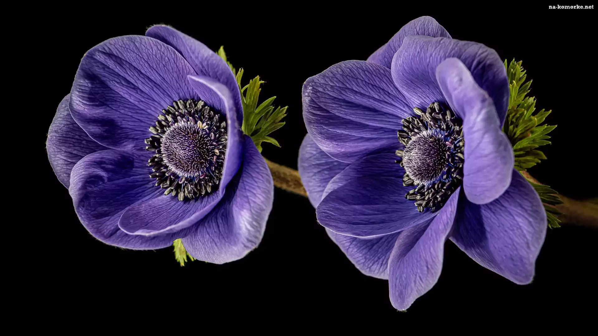 Zawilce, Dwa, Kwiaty, Tło, Fioletowe, Czarne na Komórkę
