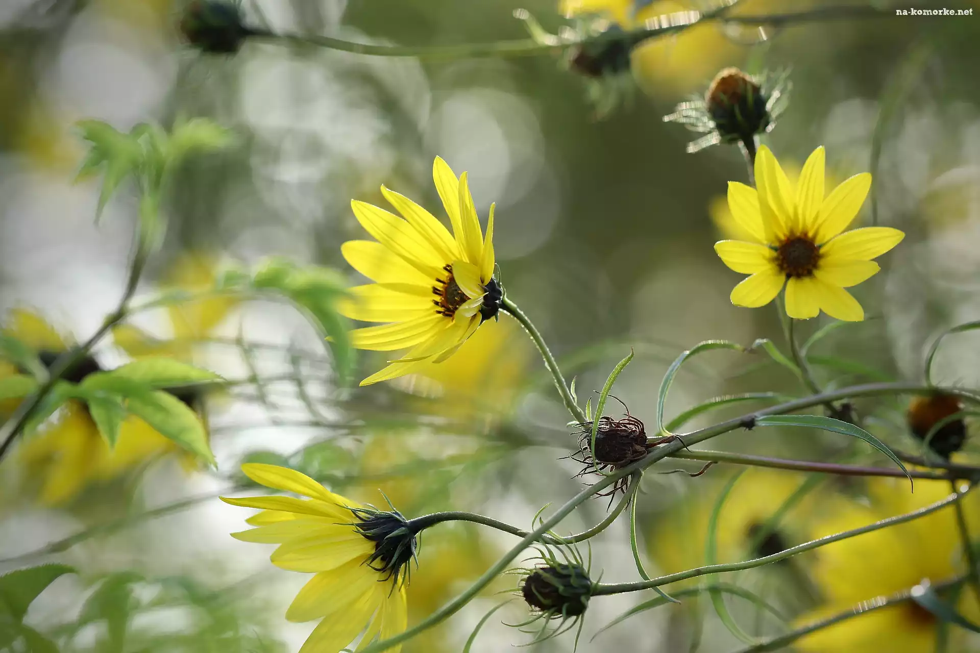 Zbliżenie, Żółte, Kwiaty, Słonecznik ozdobny, Helianthus na Komórkę