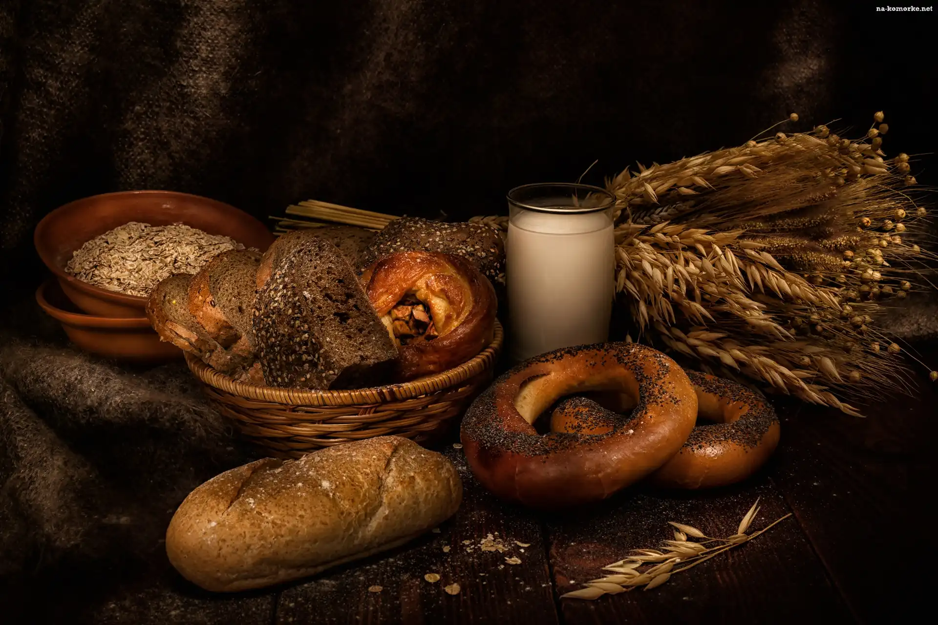 Mleko, Zboże, Koszyk, Szklanka, Pieczywo, Precle, Chleb na Komórkę