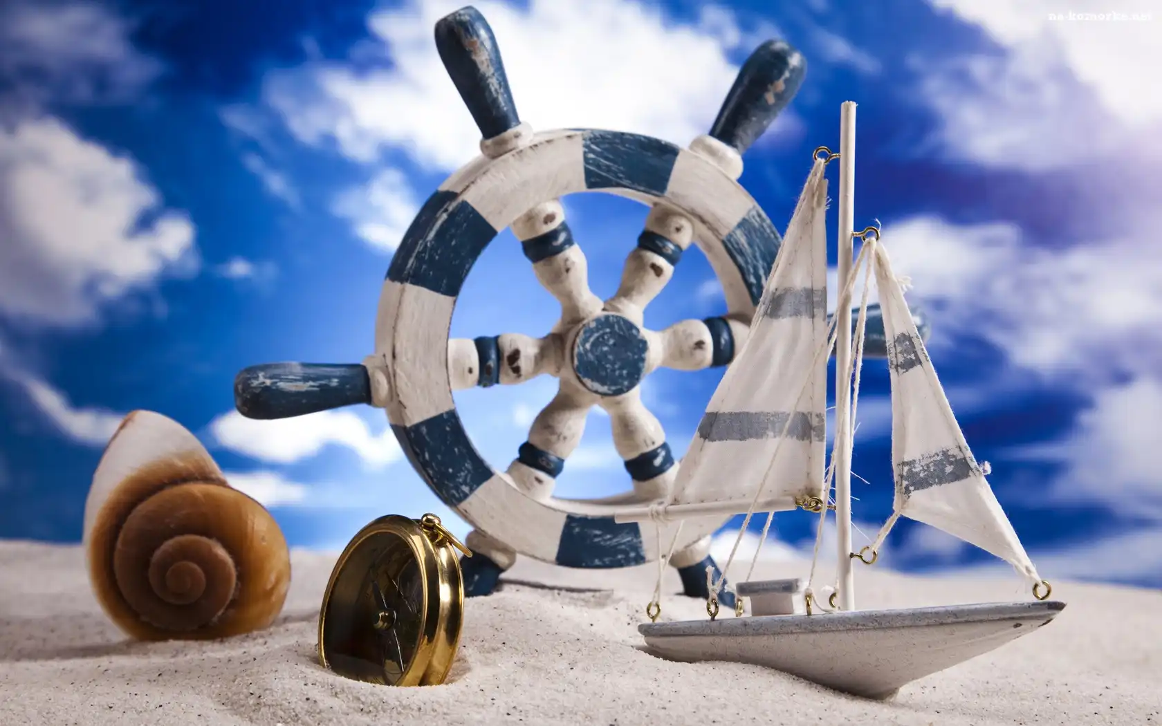 Zegarek, Niebo, Plaża, Muszelka, Stateczek na Komórkę
