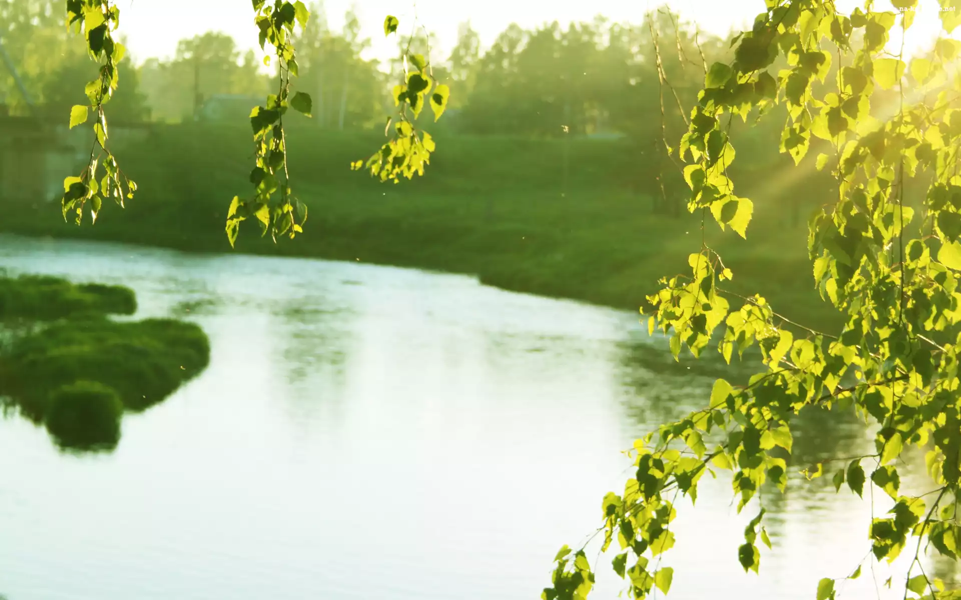 Liście, Zieleń, Rzeka na Komórkę
