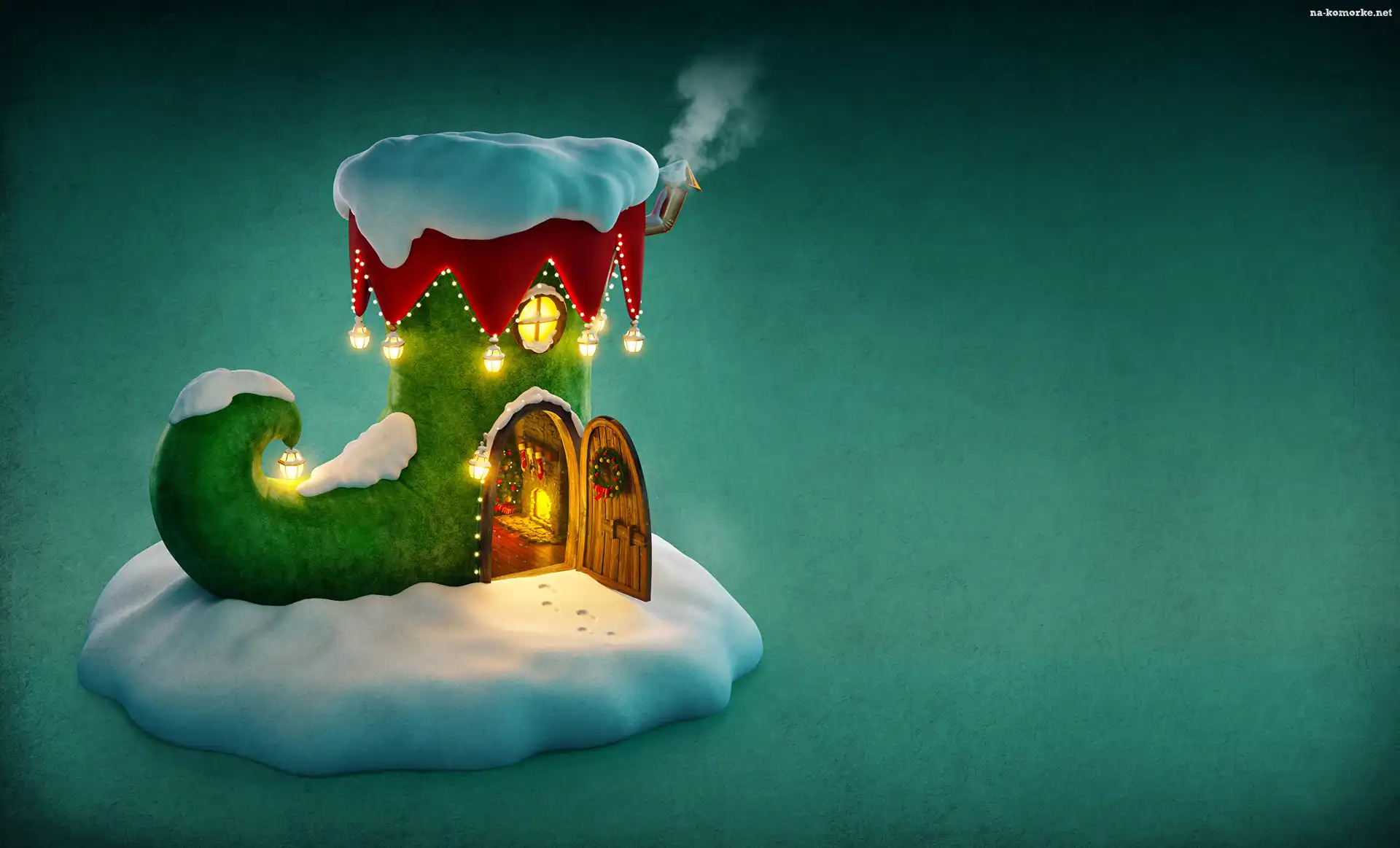 Zielone tło, Świąteczny, Domek, But, Grafika na Komórkę