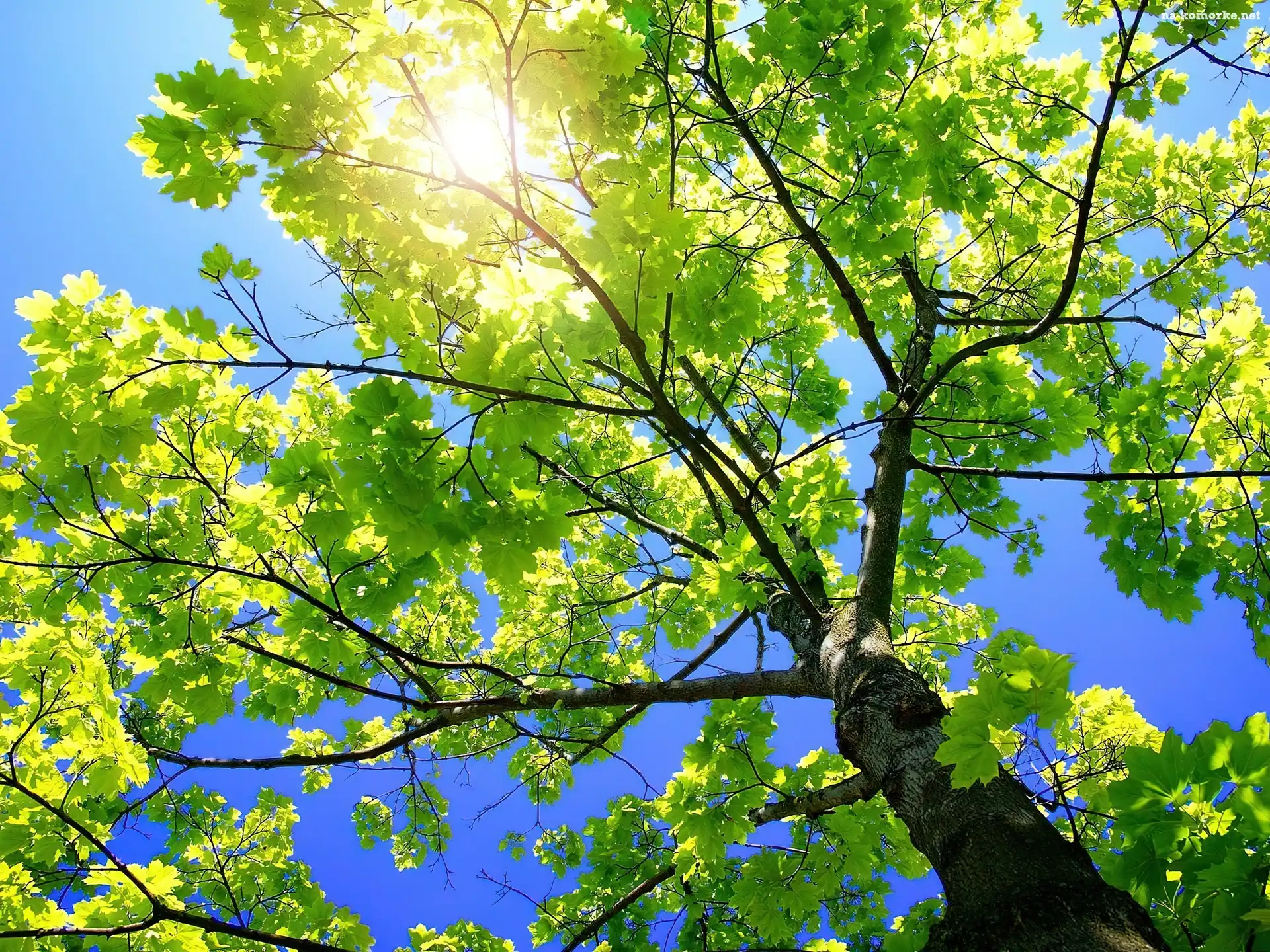 Zielone, Słońce, Drzewo, Przebijające na Komórkę