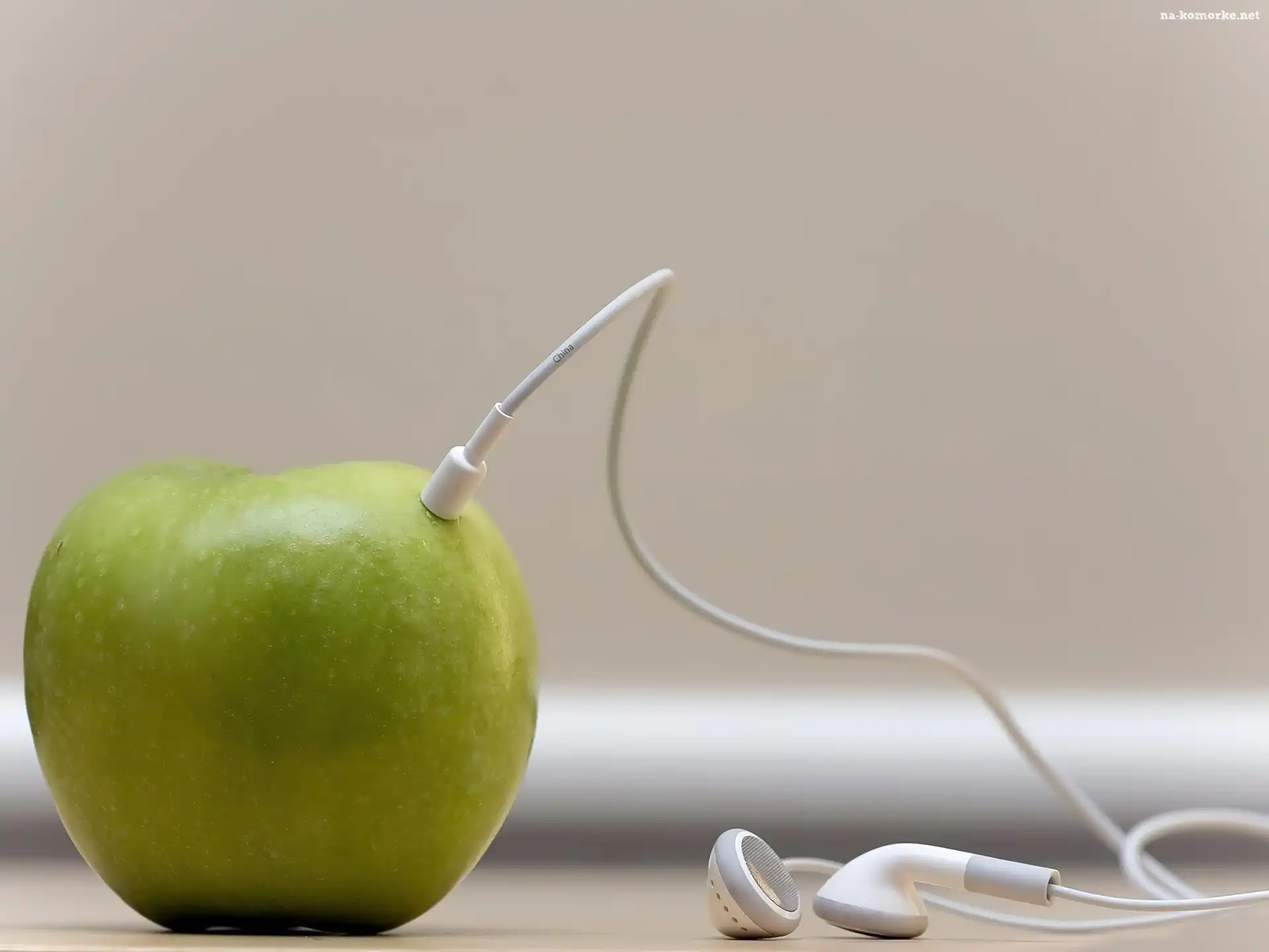 Zielone, Apple, Jabłko, Słuchawki na Komórkę