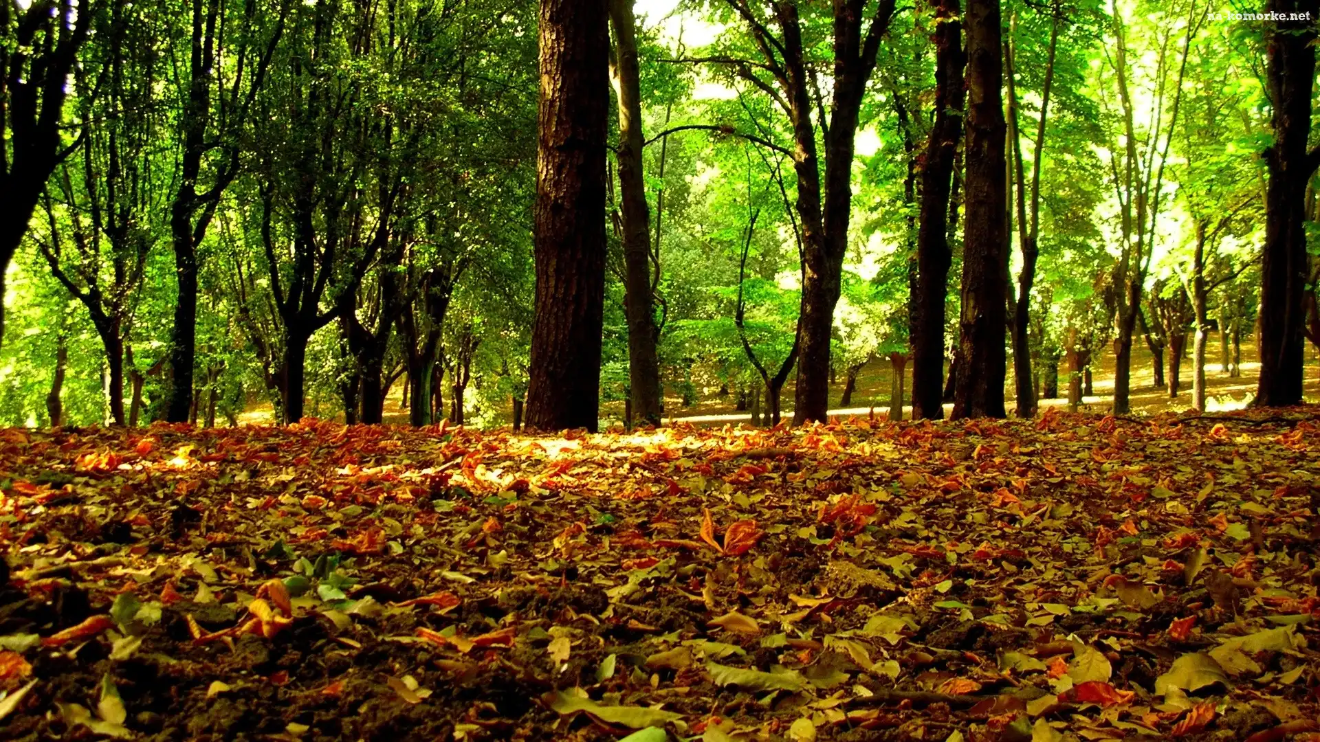 Zielone, liście, Kolorowe, Park, Jesieni, Drzewa na Komórkę
