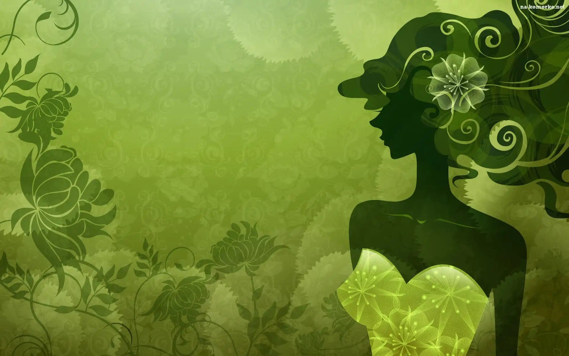Kobieta, Zielone, Kwiaty na Komórkę