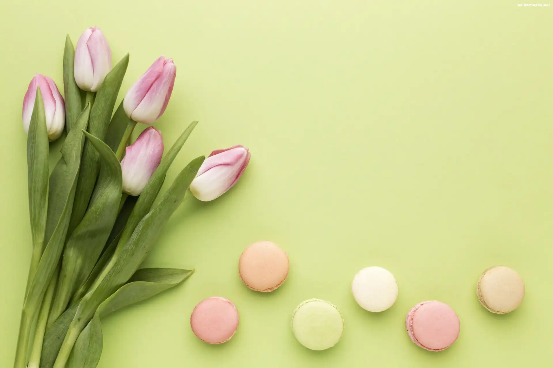 Kwiaty, Zielone, Tło, Bukiet, Tulipany, Ciasteczka, Makaroniki na Komórkę