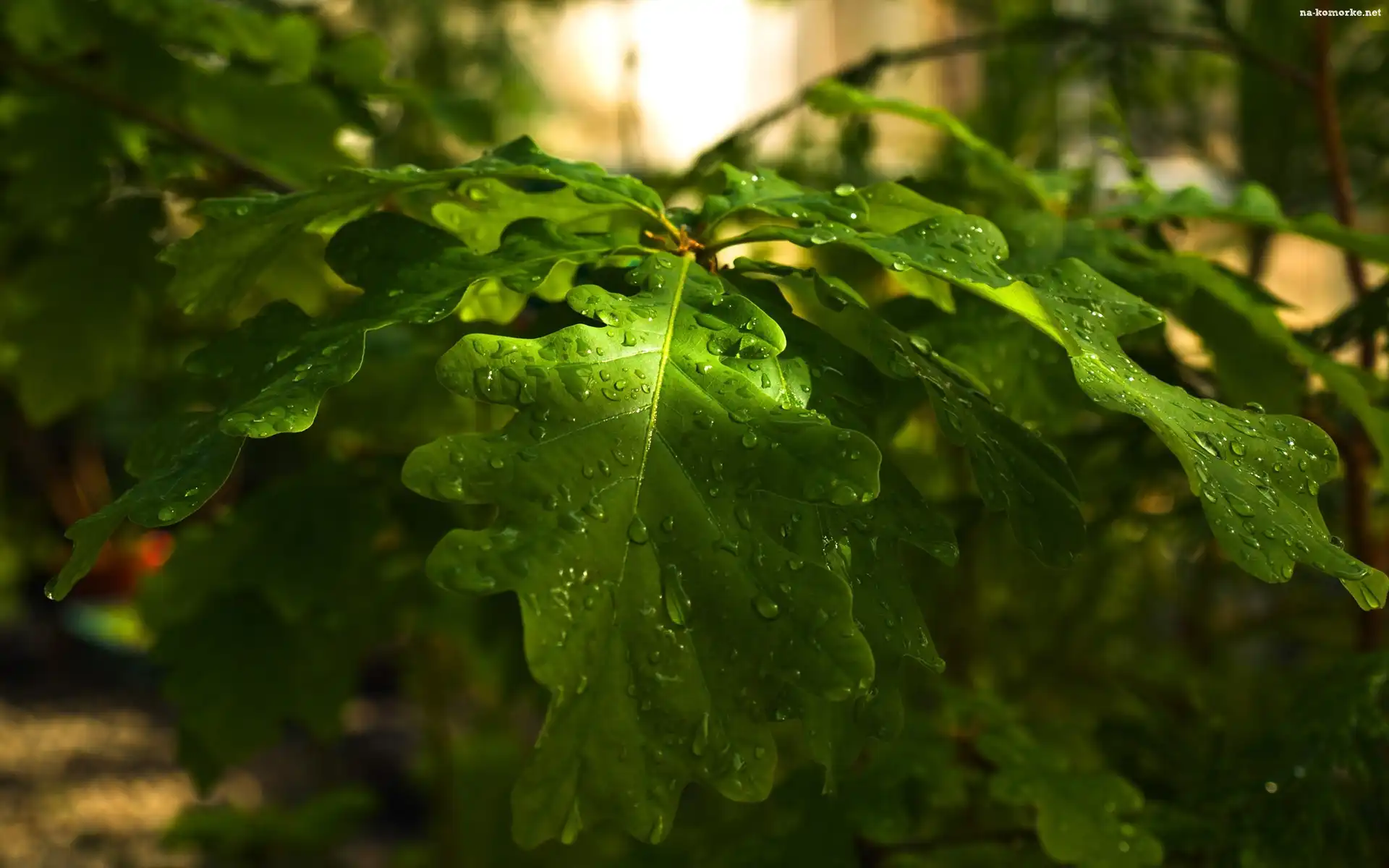 Zielone, Deszczem, Liście, Zroszone na Komórkę