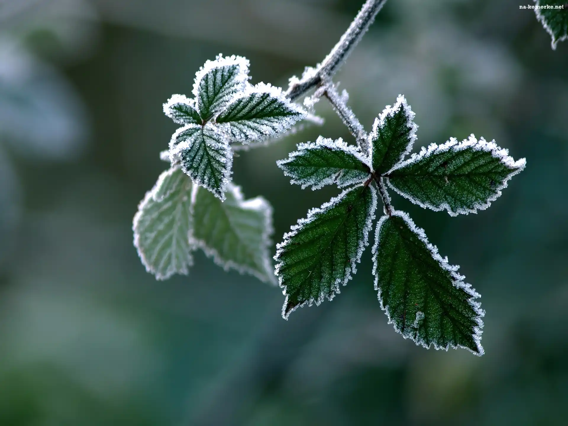 Zielone, Mróz, Liście, Szron na Komórkę
