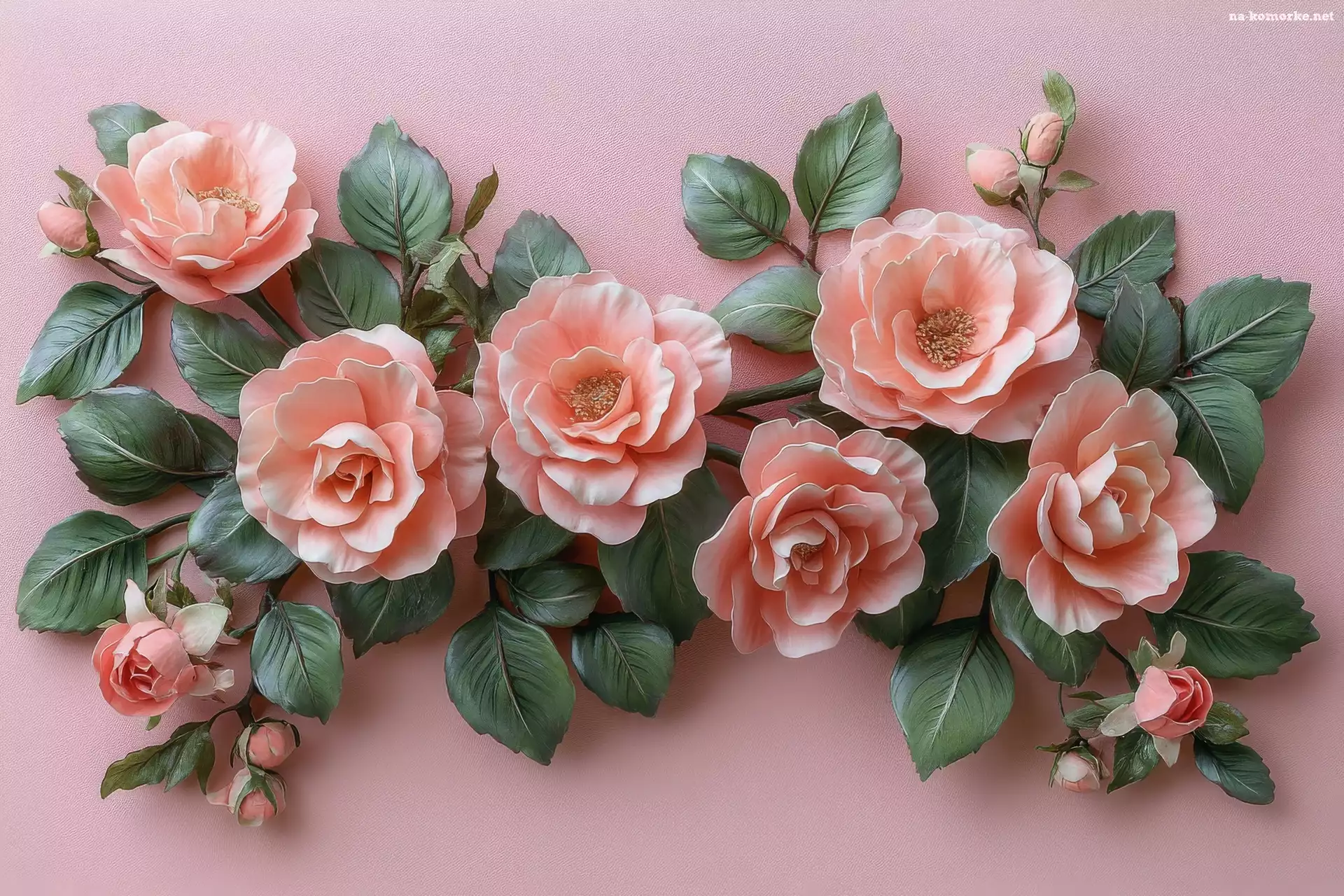 Różowe, Zielone, Listki, Róże, Tło na Komórkę