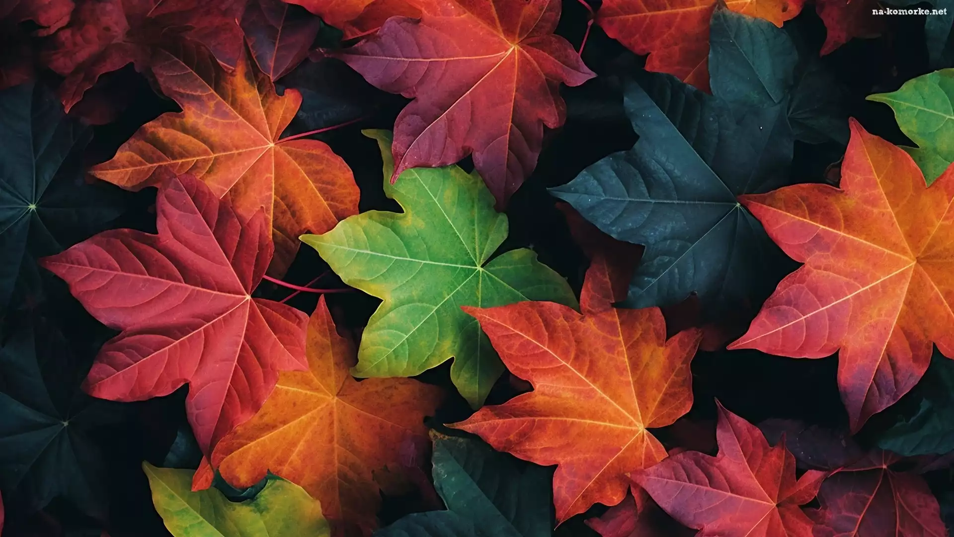 Pomarańczowe, Liście, Jesienne, Zielone na Komórkę