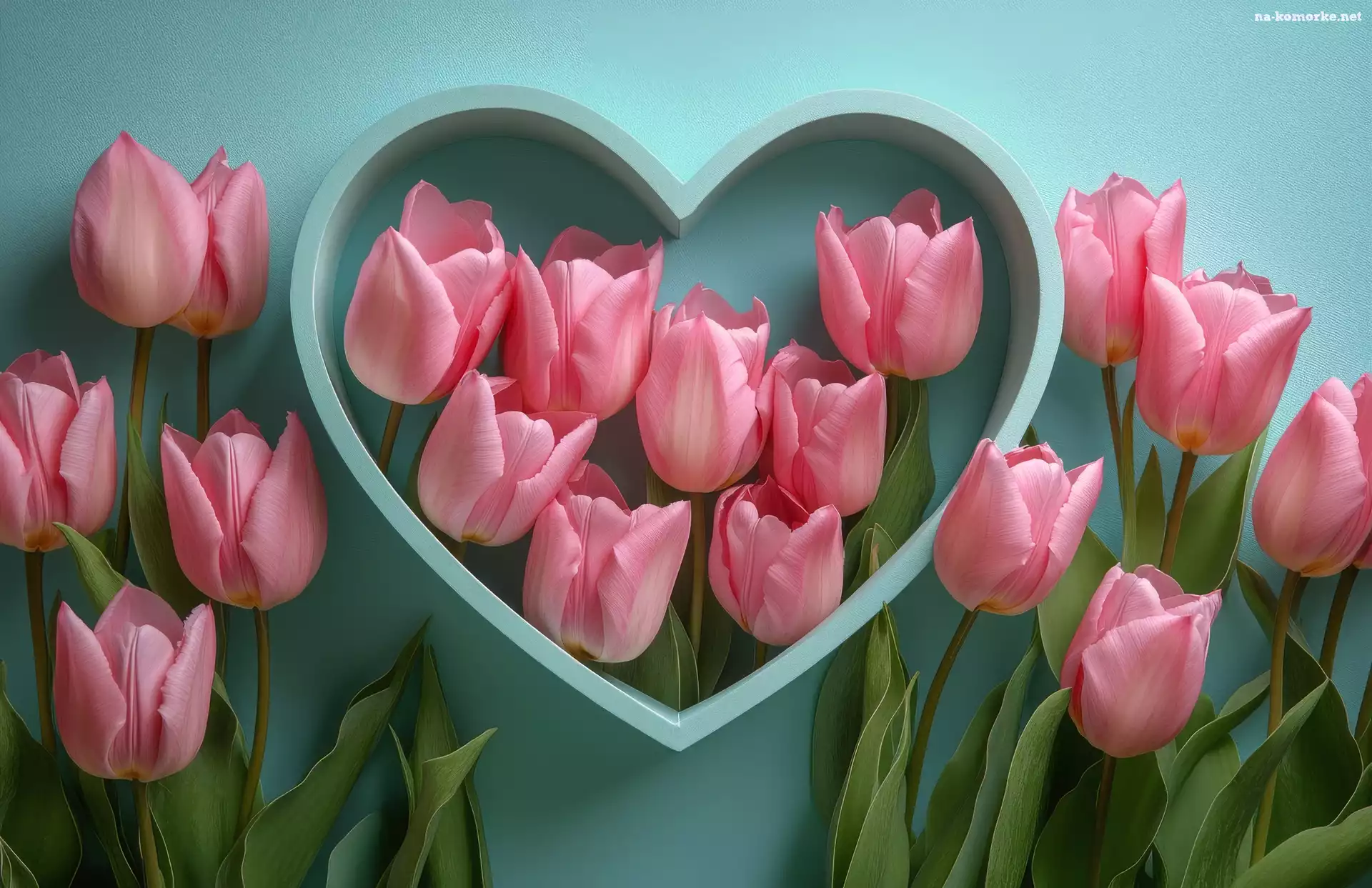 Serce, Zielone tło, Różowe, Tulipany na Komórkę