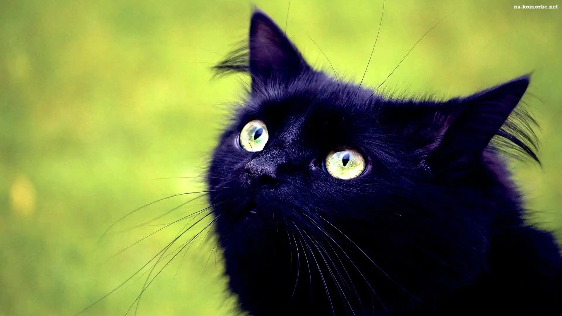 Zielone, Kot, Czarny, Portret, Wąsy, Oczy na Komórkę