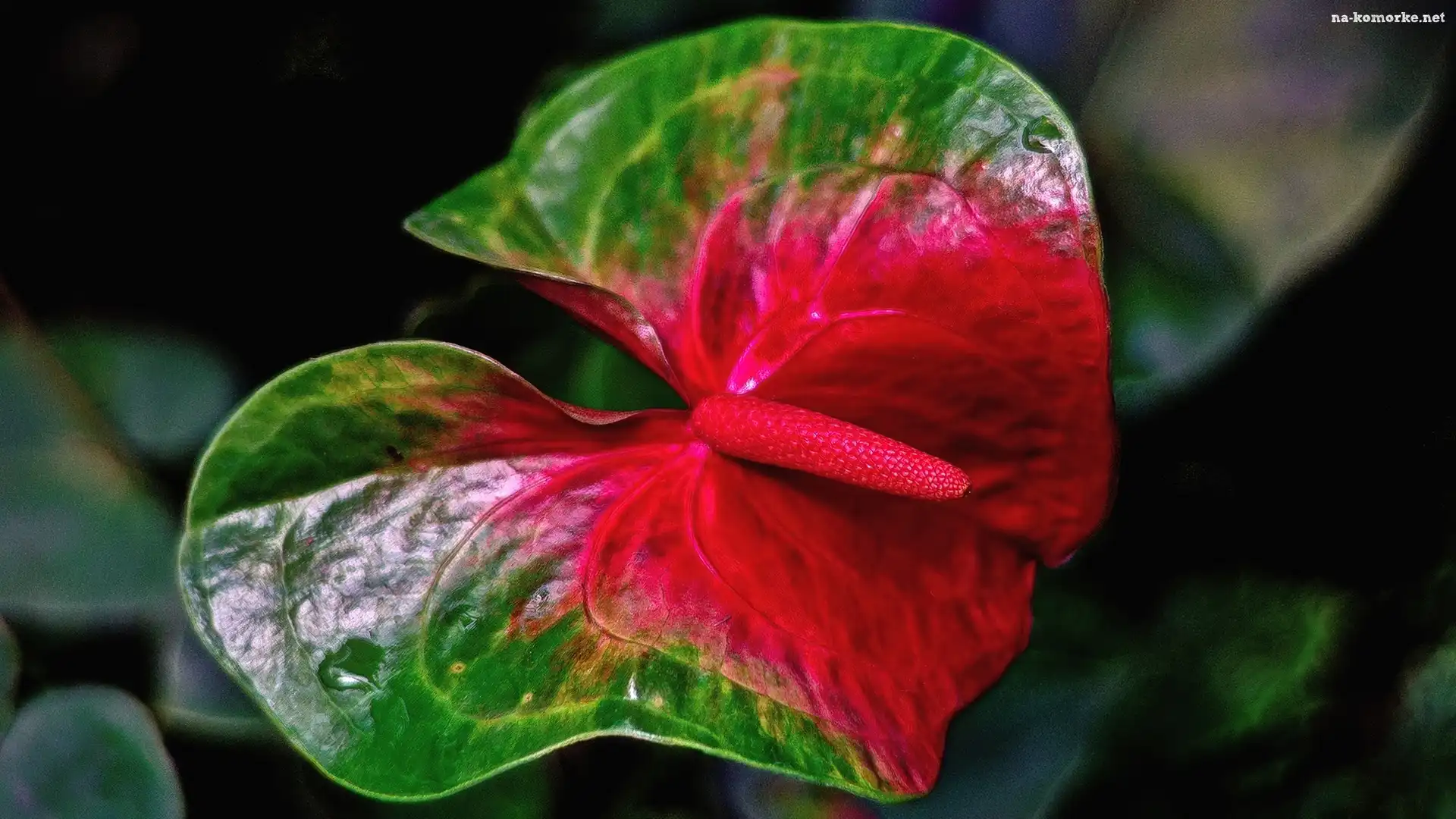 Zielono, Anturium, Czerwony, Kwiat na Komórkę