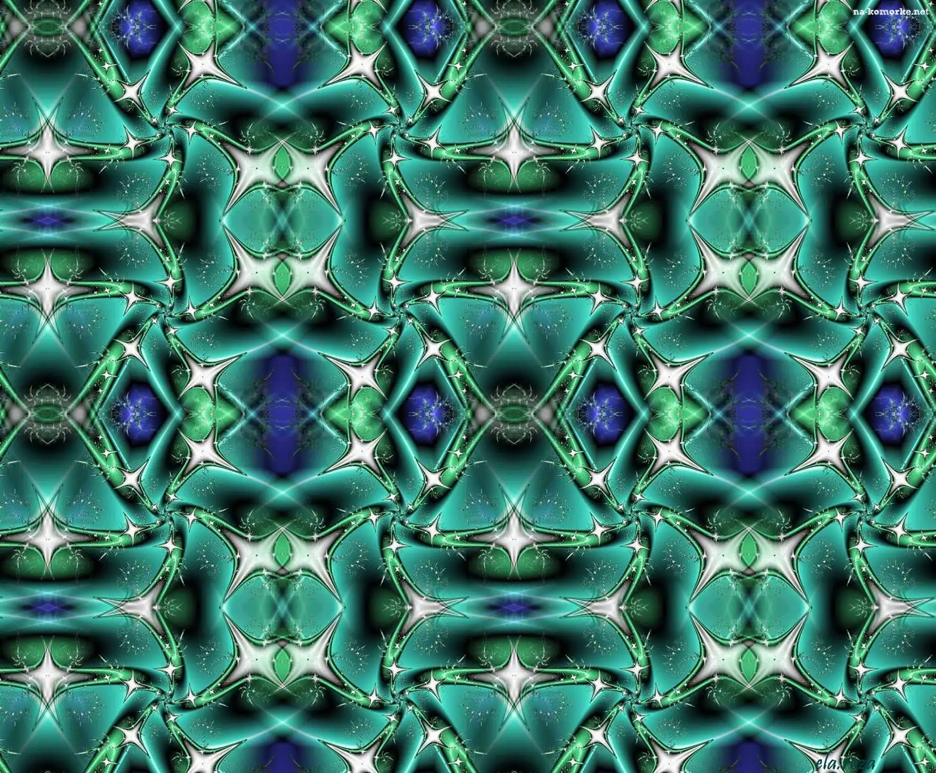 Zielono, Fraktale, Niebieskie, Wzory na Komórkę
