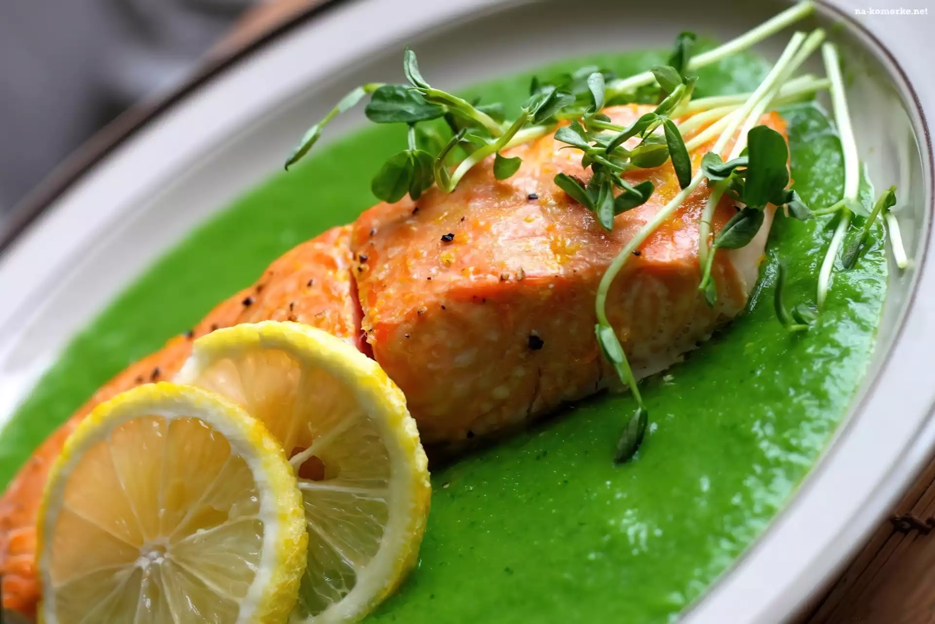 Zielony, Ryba, Potrawa, Cytryna, Łosoś, Sos na Komórkę