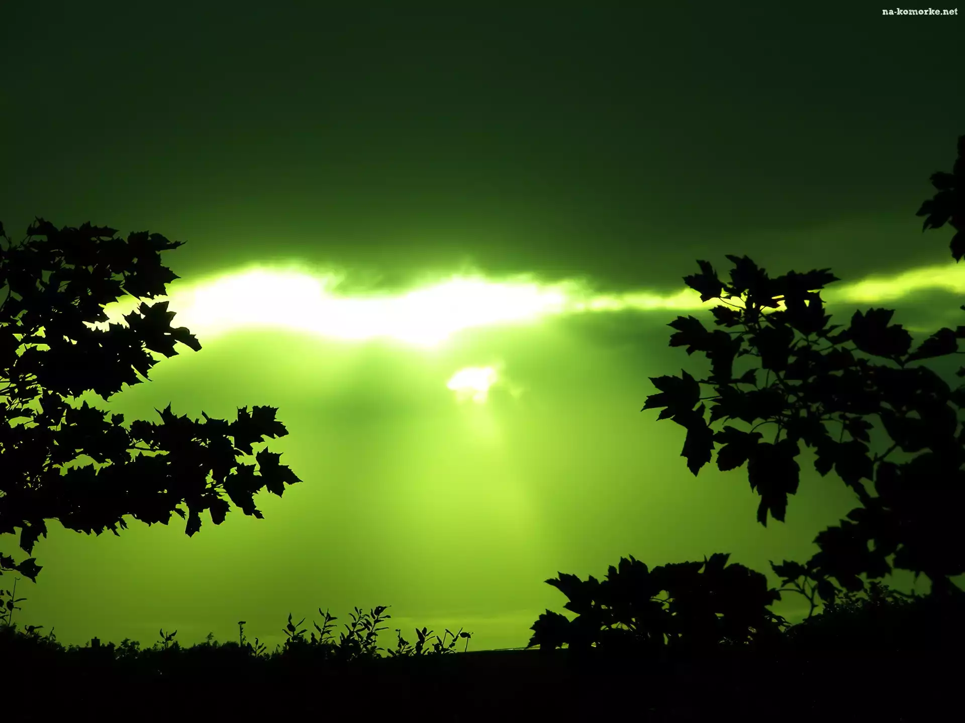 Zielony, Liście, Zachód, Słońca na Komórkę