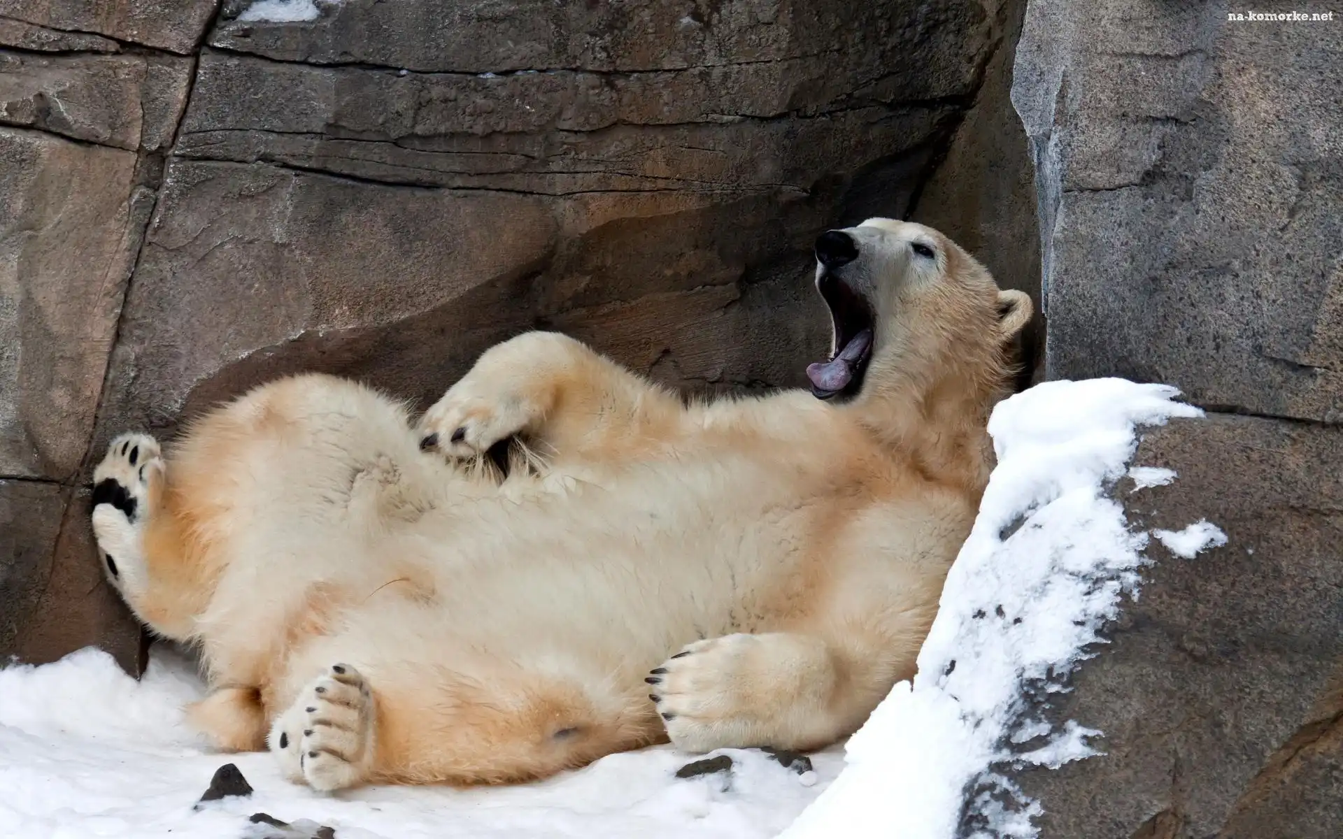 Ziewający, Śnieg, Niedźwiedź, Skała na Komórkę