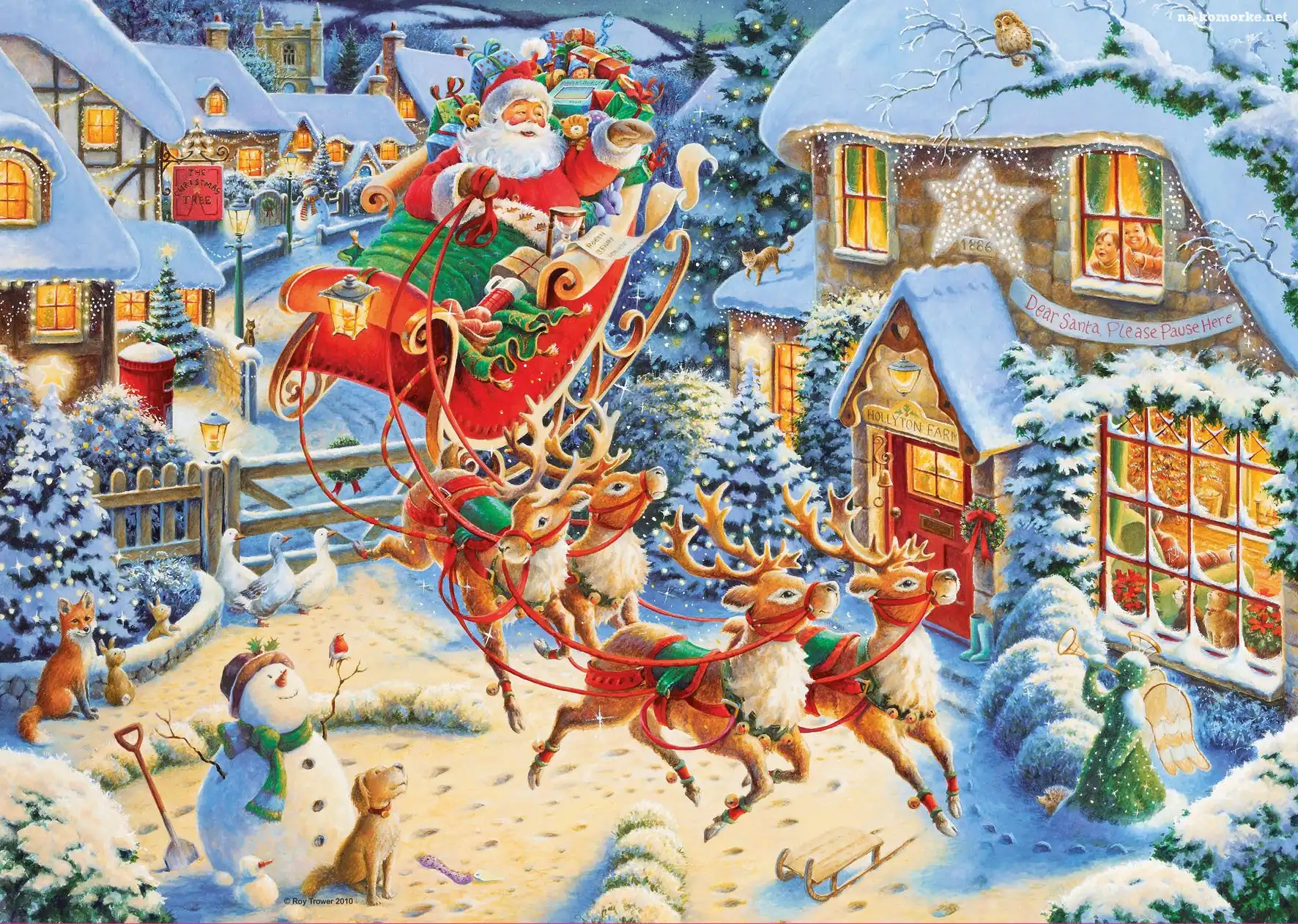 Zima, Mikołaj, Sanie, Bałwanek, Domy na Komórkę