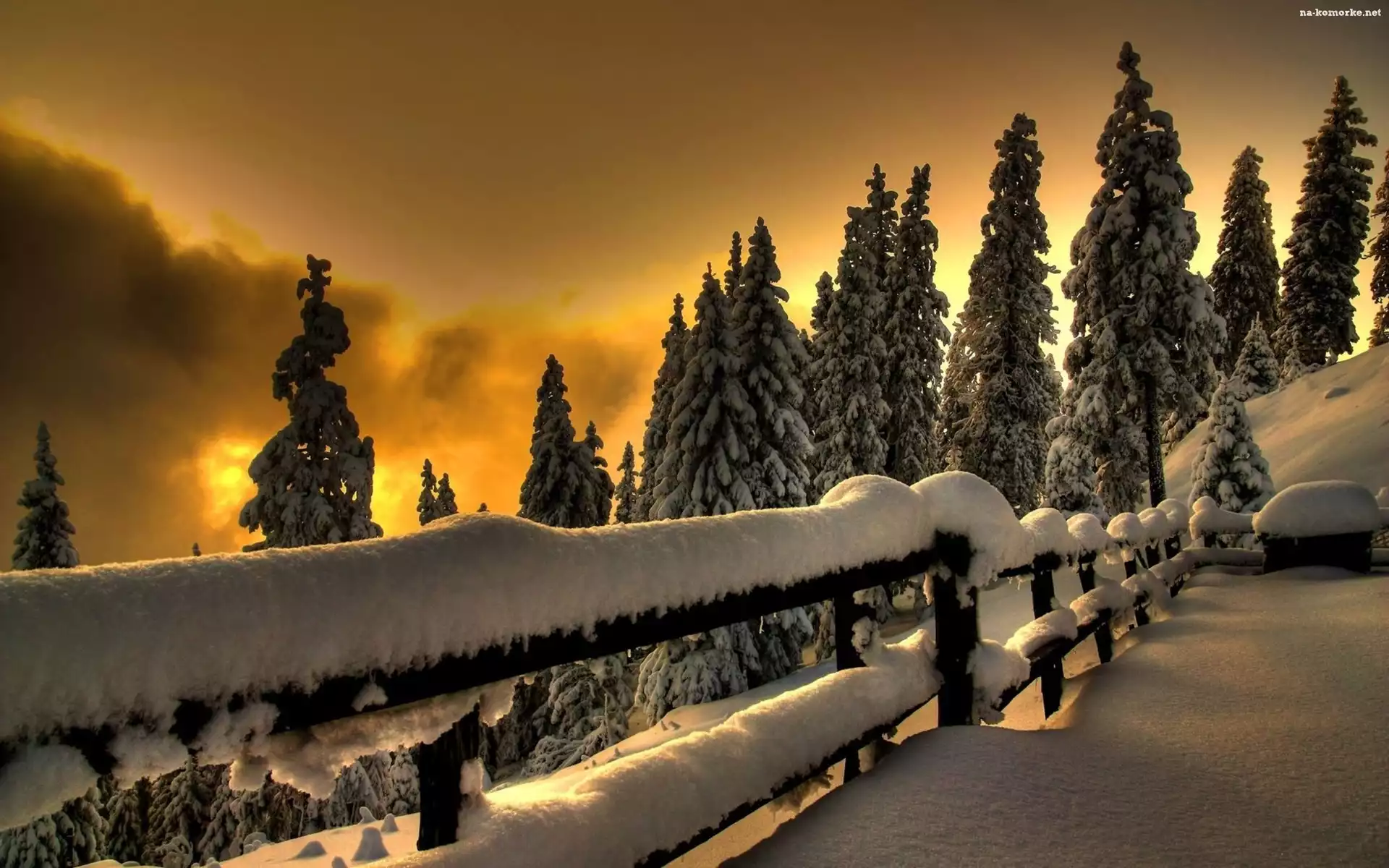 Zima, Słońca, Zachód, Taras, Chmury, Ośnieżony na Komórkę