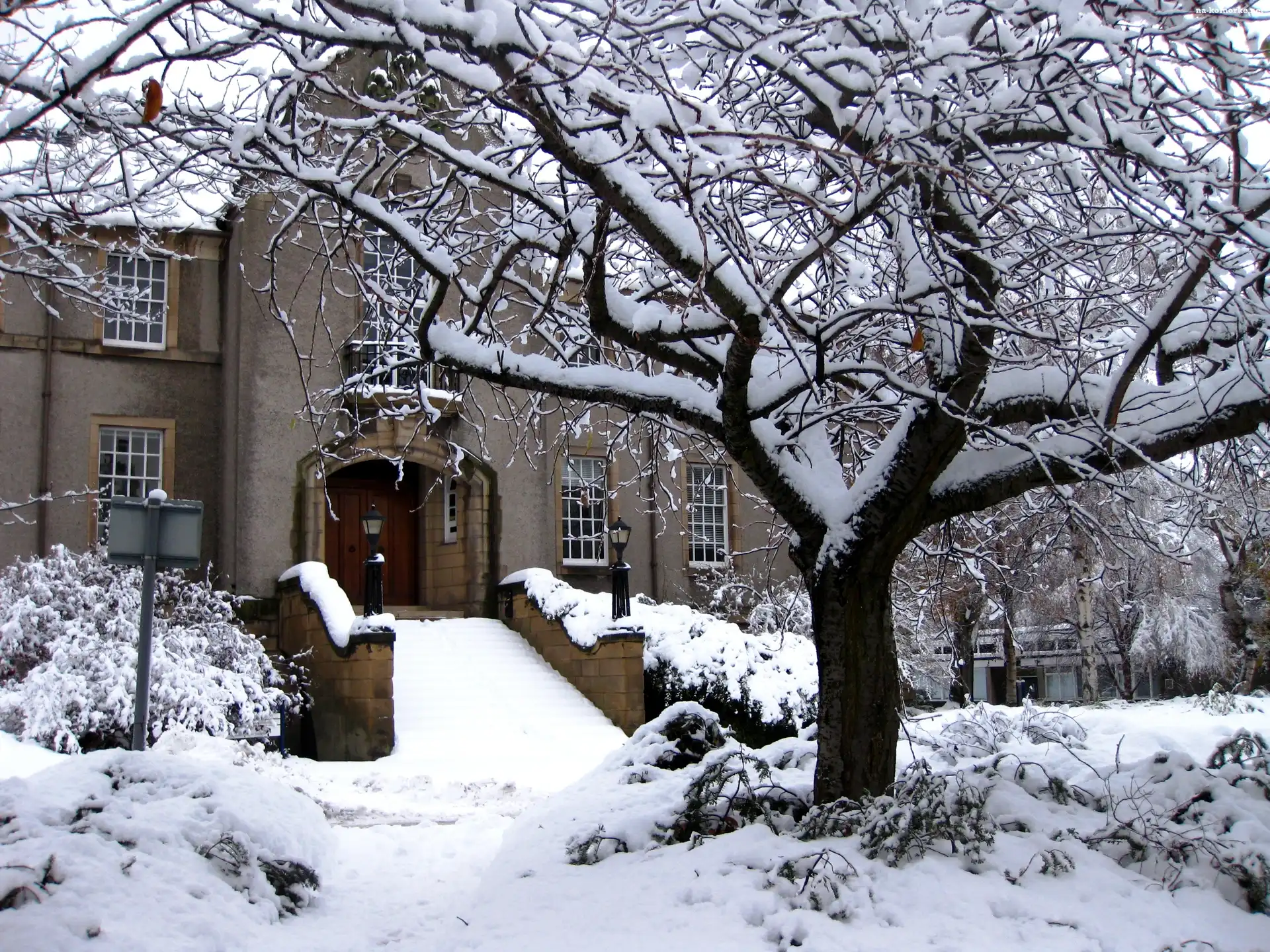 Zima, Śnieg, Dom, Drzewo na Komórkę