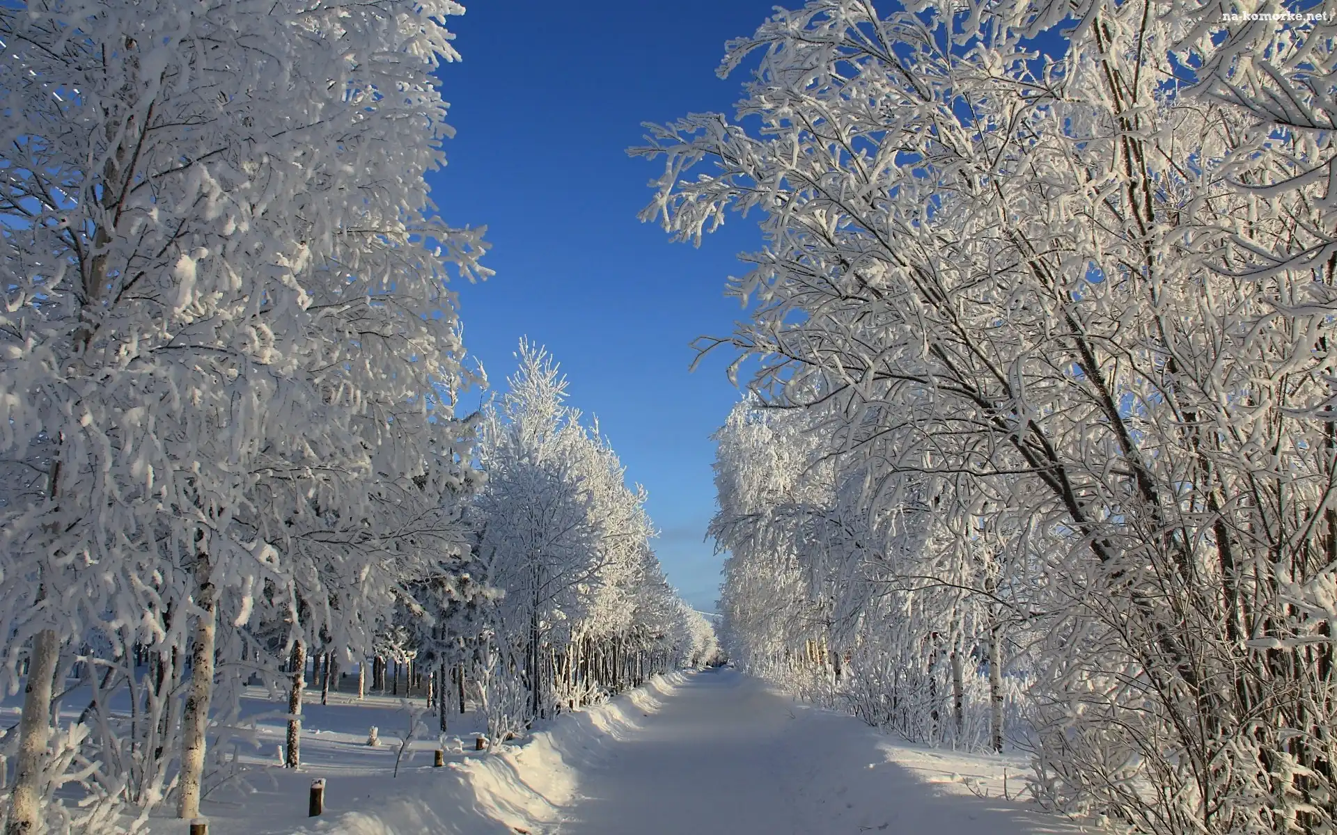 Zima, Drzewa, Droga, Oszronione na Komórkę