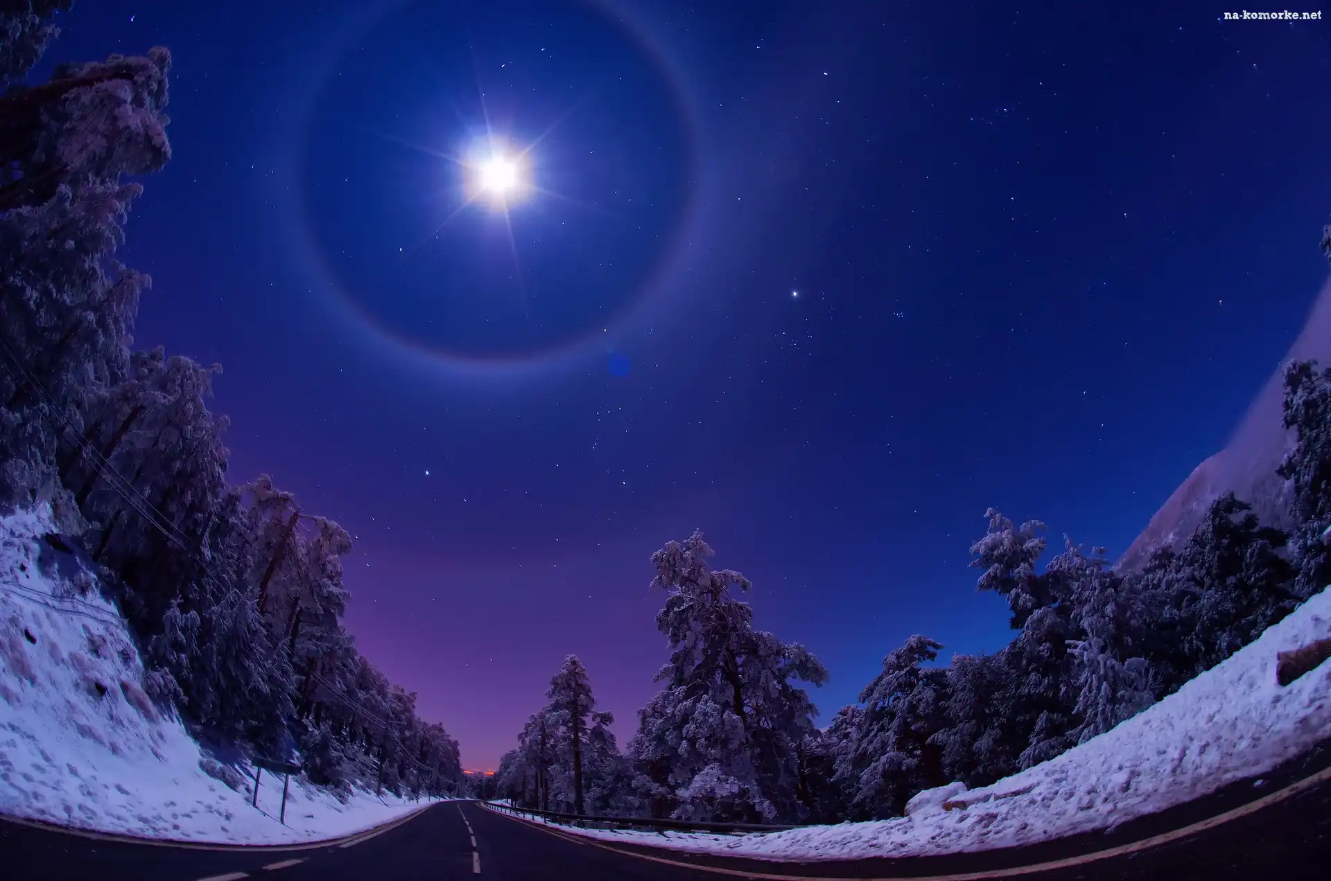 Zima, Księżyc, Droga, Las na Komórkę