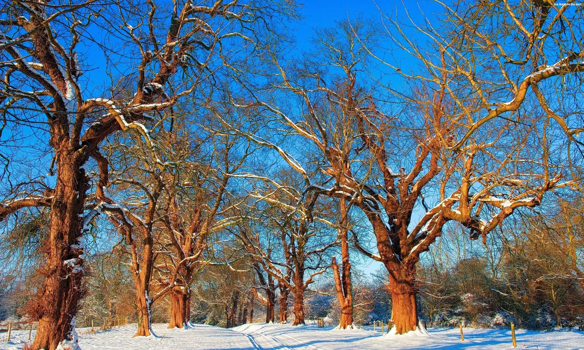 Zima, Niebo, Droga, Drzewa na Komórkę