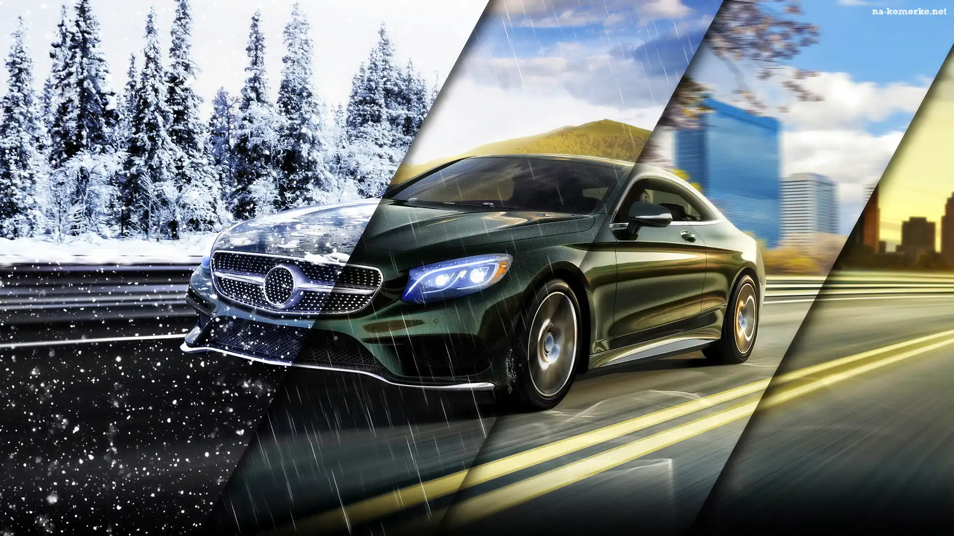 Zima, Samochód, Miasto, Drzewa, Droga na Komórkę