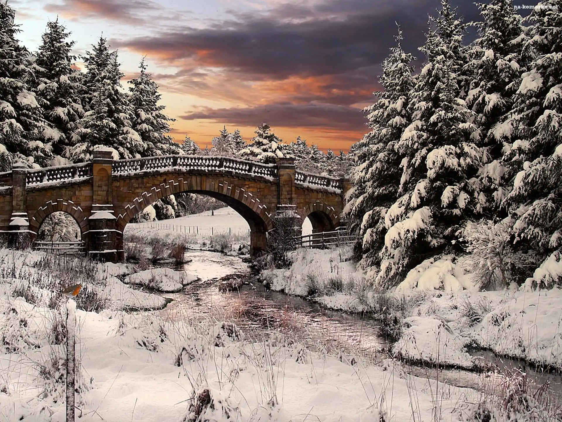 Zima, Most, Drzewa, Śnieg na Komórkę