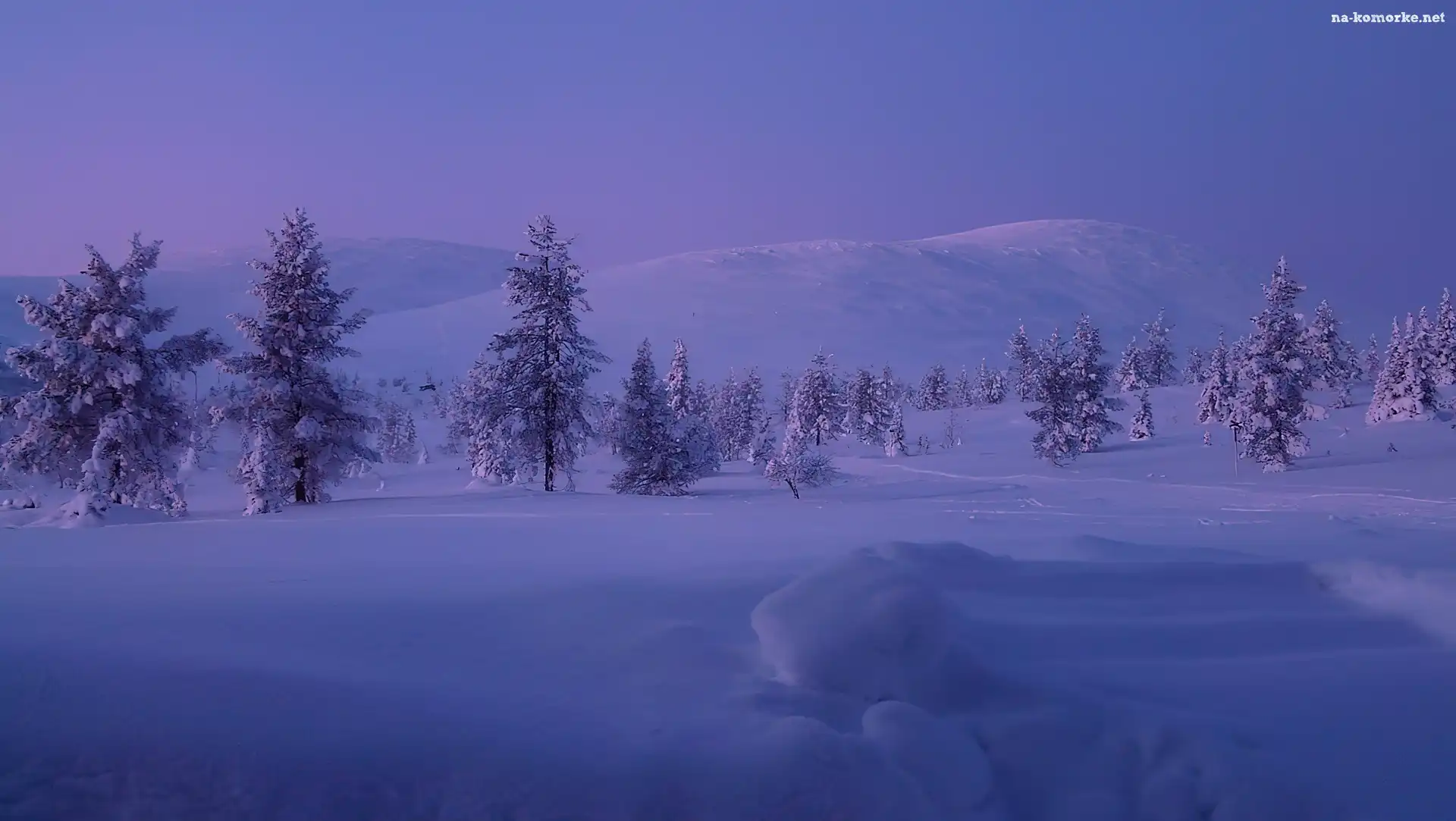 Zima, Wieczór, Drzewa, Góry na Komórkę