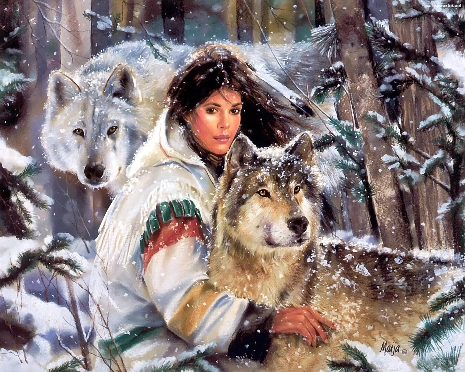Zima, Dziewczyna, Indianka, Dwa, Wilki na Komórkę