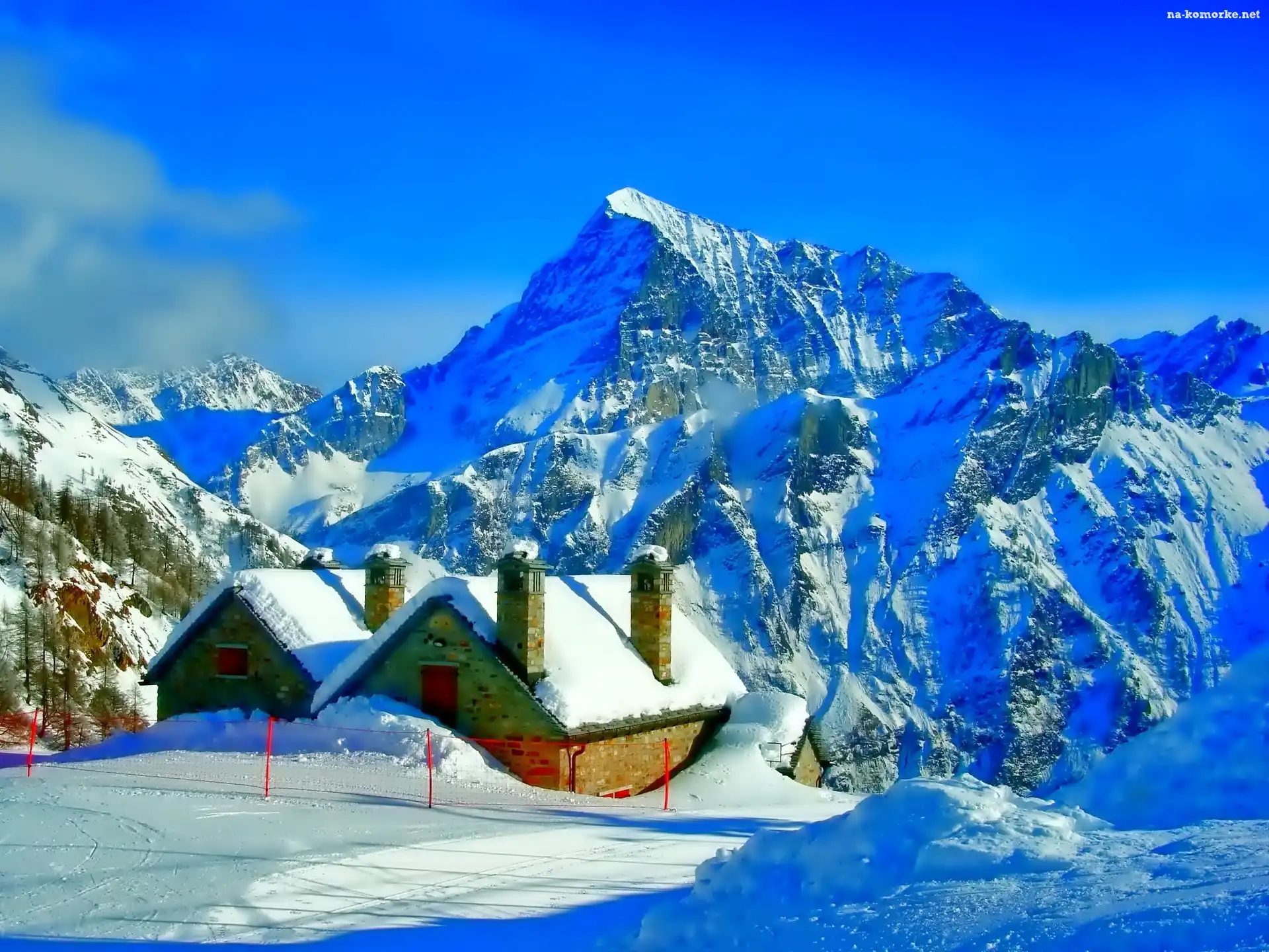 Zima, Góry Drzewa, Rzeka, Kamienie, Domy, Kościół Góry Na, Łoże, Basen, Taras, Widok, Miasto Chata, Chmury, Jezioro Góry, Wodospadzik Zimowe, Drzewa, Zaspy, Śnieżne Pokój, Widok, Góry Japonia, Dom, Drzewa Ośnieżone, Świerki, Stoki, Gór Snowbording, śnieg, deska, snowboardzista Zima Dom, Jezioro, Zieleń Zima, Chatka, Góry