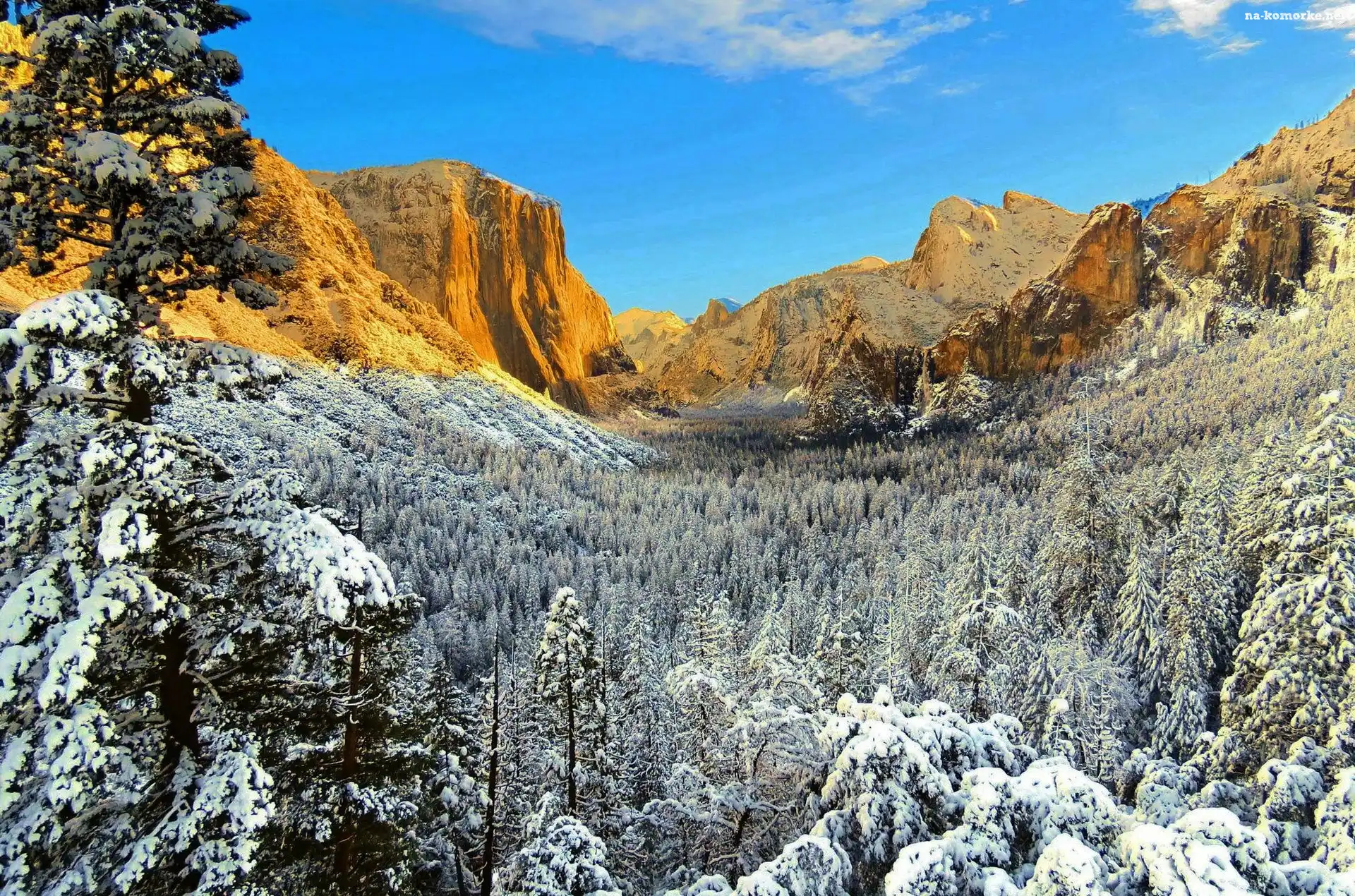 Zima, Drzewa, Góry, Ośnieżone na Komórkę