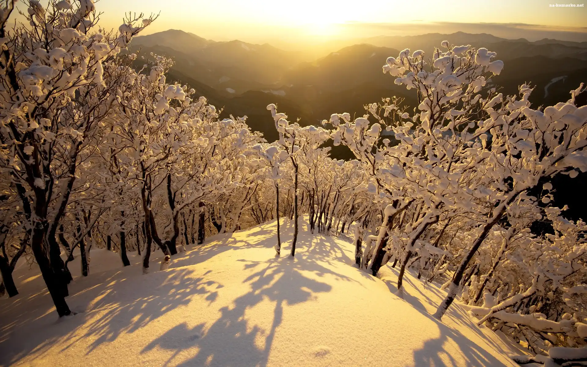 Zima, Drzewa, Góry, Ośnieżone na Komórkę