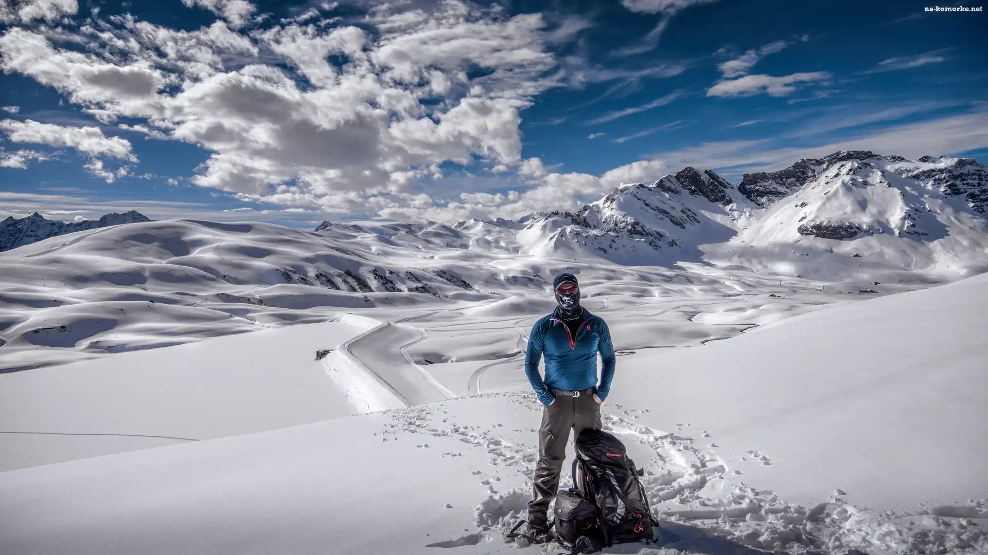 Góry, Zima, Mężczyzna na Komórkę