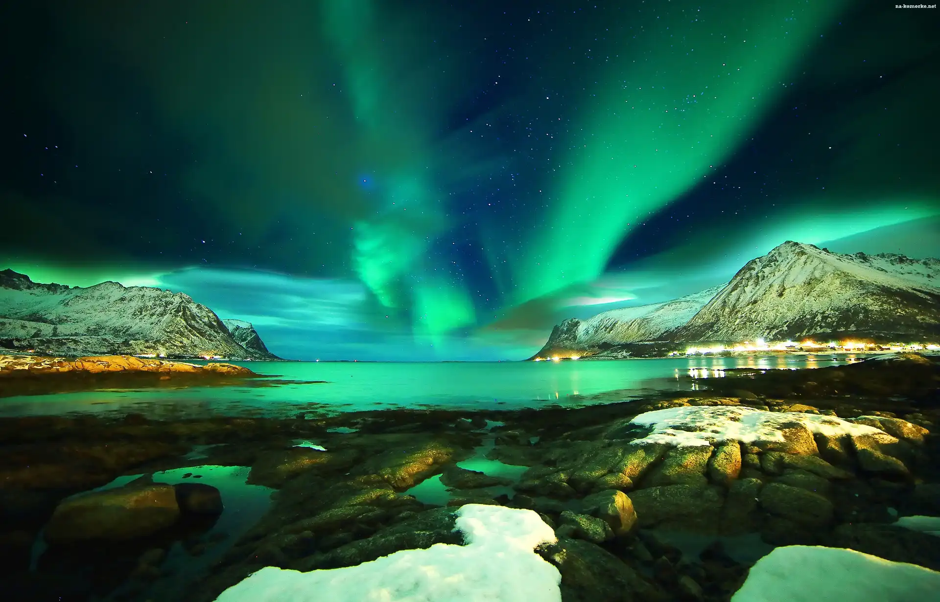Norwegia, Góry, Śnieg, Zorza, Polarna Zorza, Polarna Niebo, Kwiaty, Chmury, Jezioro Zachód Słońca, Jezioro Góry, Niebo Boże Narodzenie, bałwanek Zima Góry, Chmurki Góry, Zima, Jezioro Góry, Pokrywa, Śnieżna Drewniany, Góry, Domek, Choinki, Zorza polarna, Zima Zimowy, Krajobraz Zima, Góry, Zorza, Polarna Chiny, Rzeka, Góry Góry czerwone, Niebo