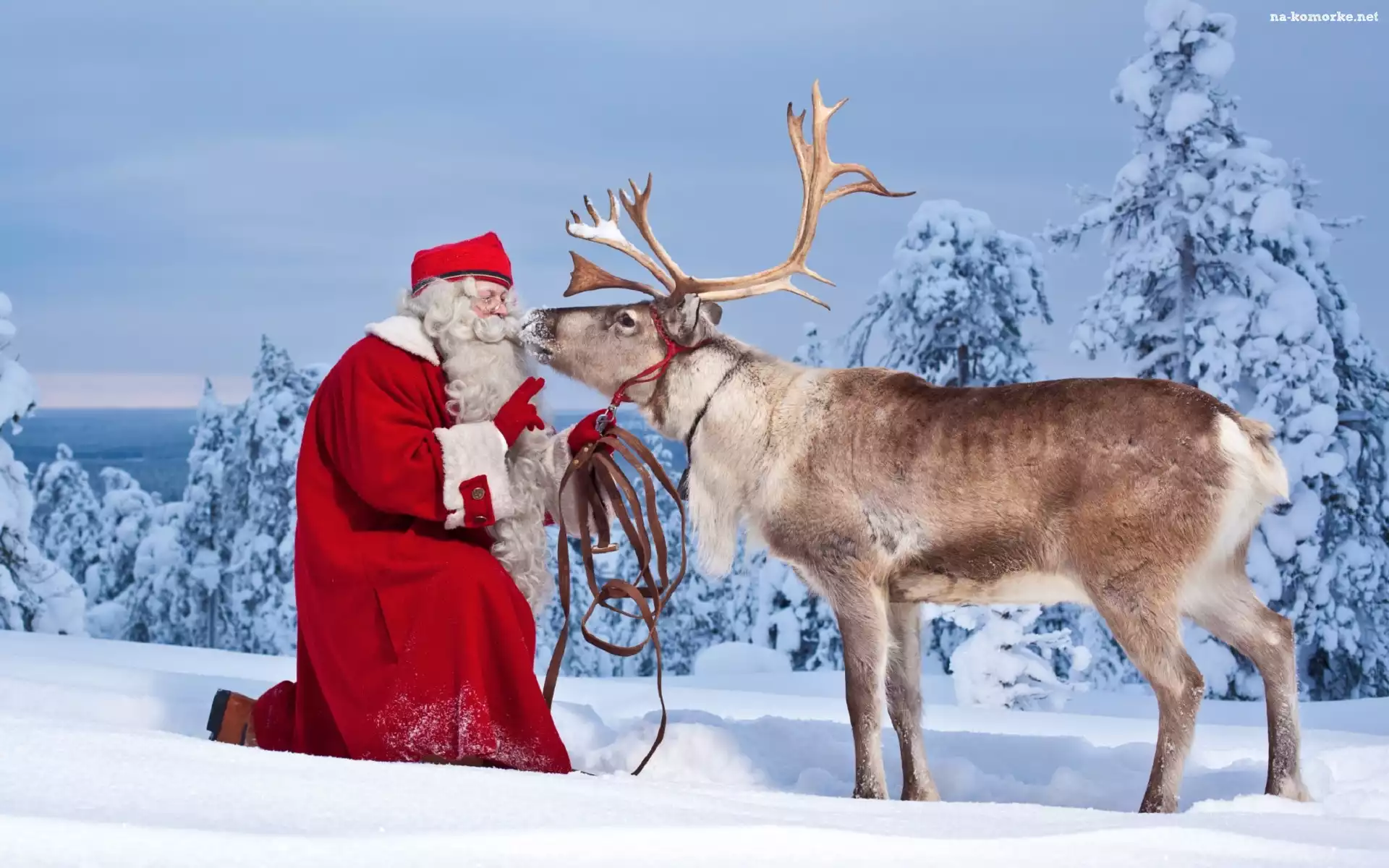 Zima, Mikołaj, Renifer, Góry, Drzewa na Komórkę