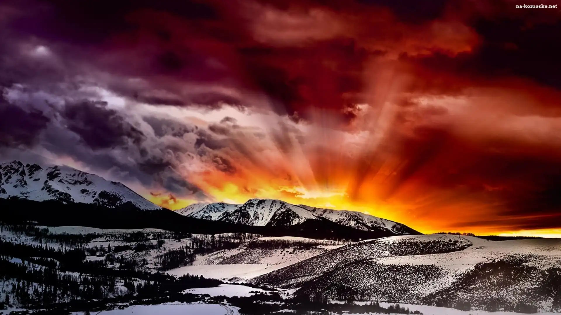 Zima, Zachód, Słońca, Góry, Las na Komórkę