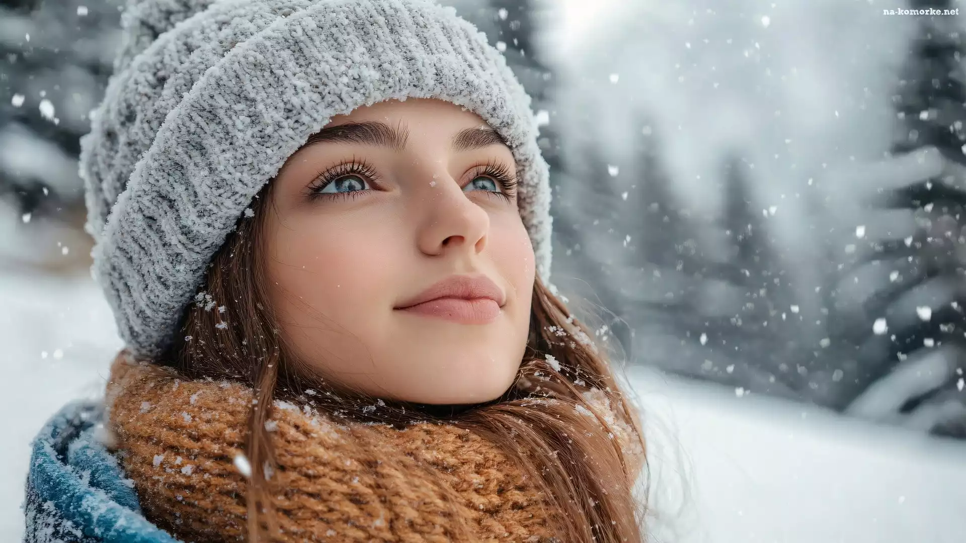 Spojrzenie, Śnieg, Kobieta, Zima, Czapka, Szal, Szatynka na Komórkę