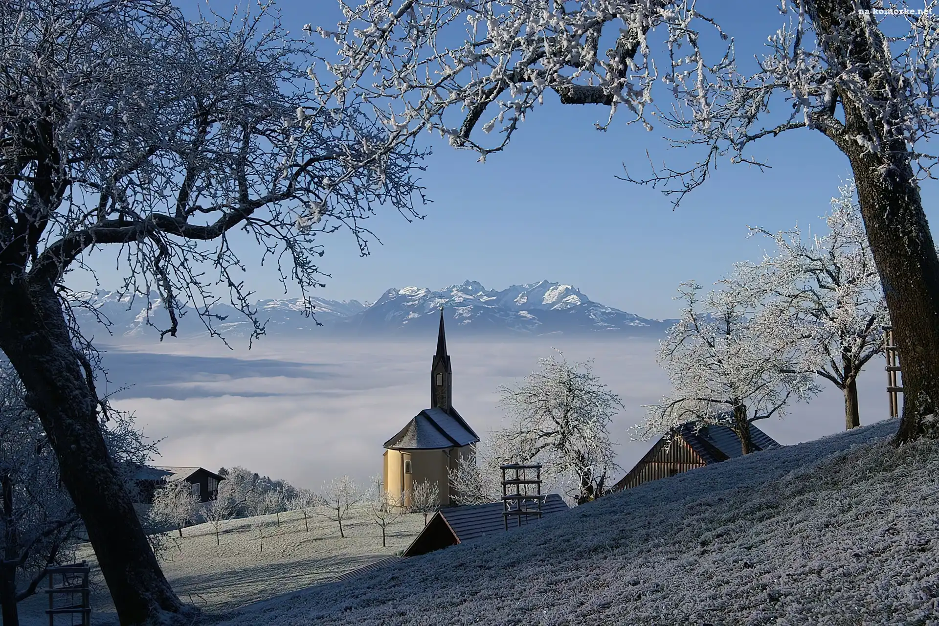 Zima, Austria, Kościółek, Drzewa na Komórkę