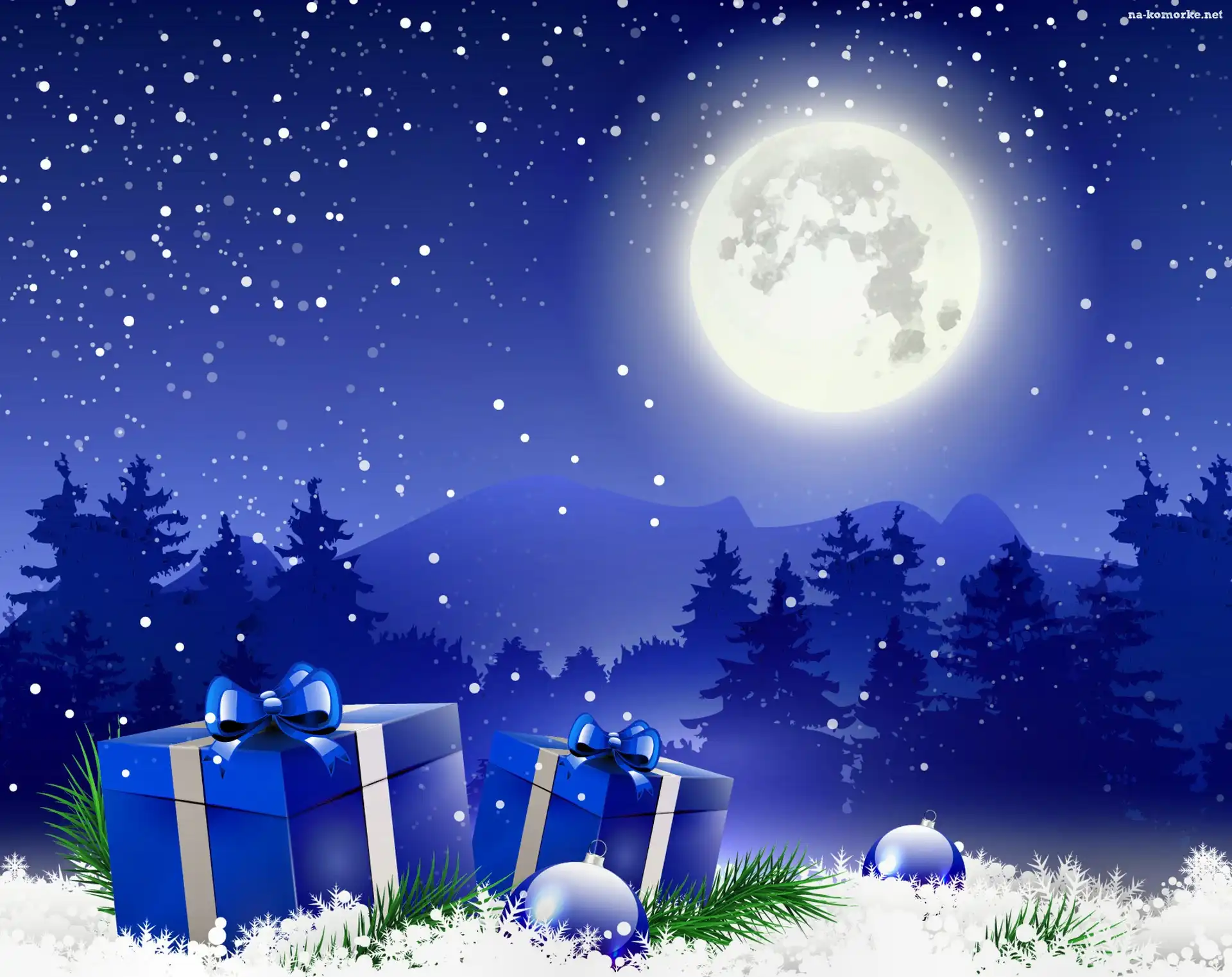 Zima, Święta, Księżyc, Prezenty na Komórkę
