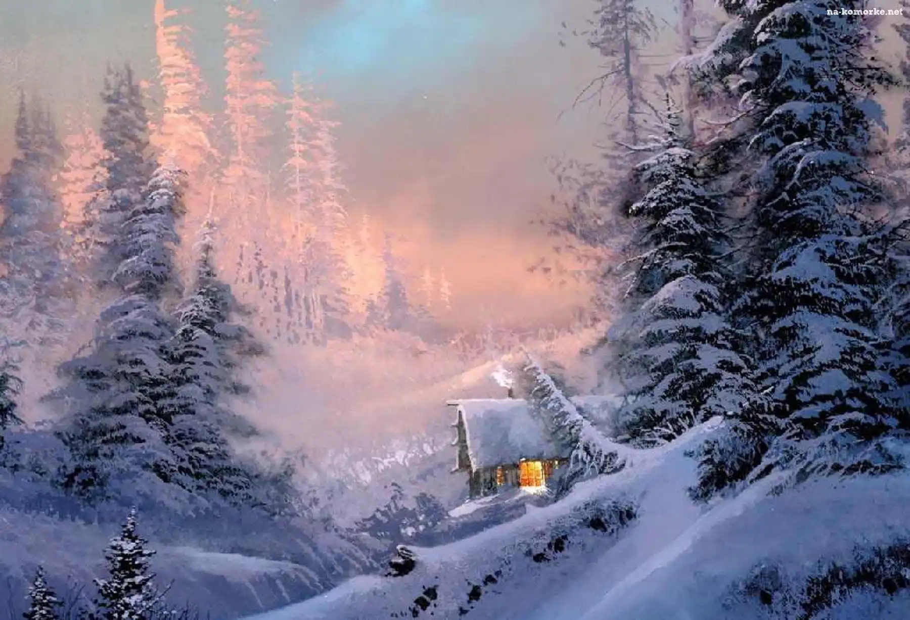Zima, Domek, Las, Choinki na Komórkę