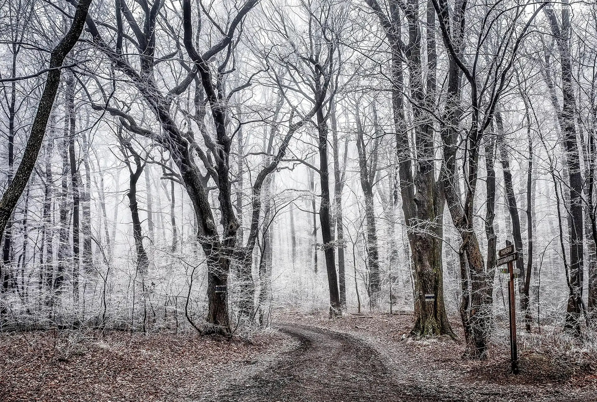 Zima, Drzewa, Las, Droga na Komórkę