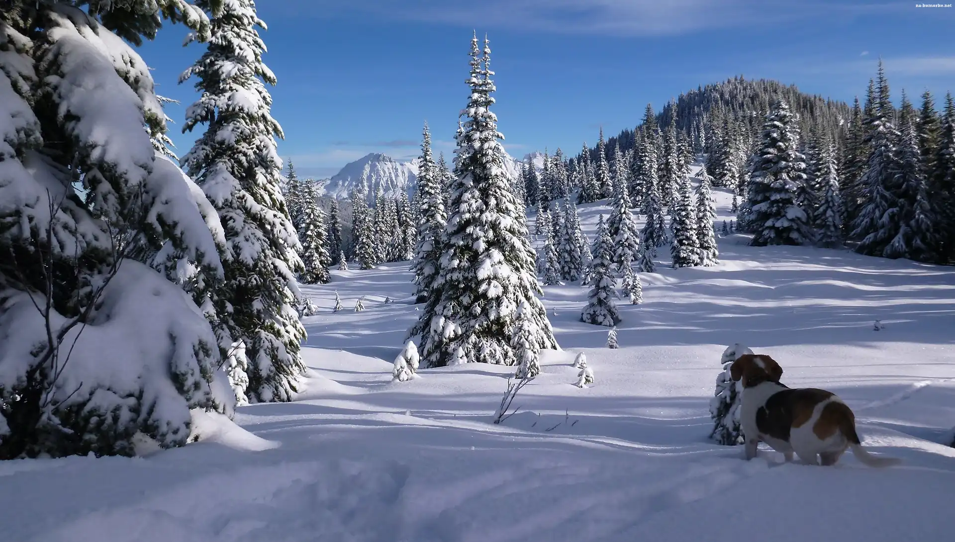 Zima, Pies, Las, Góry na Komórkę