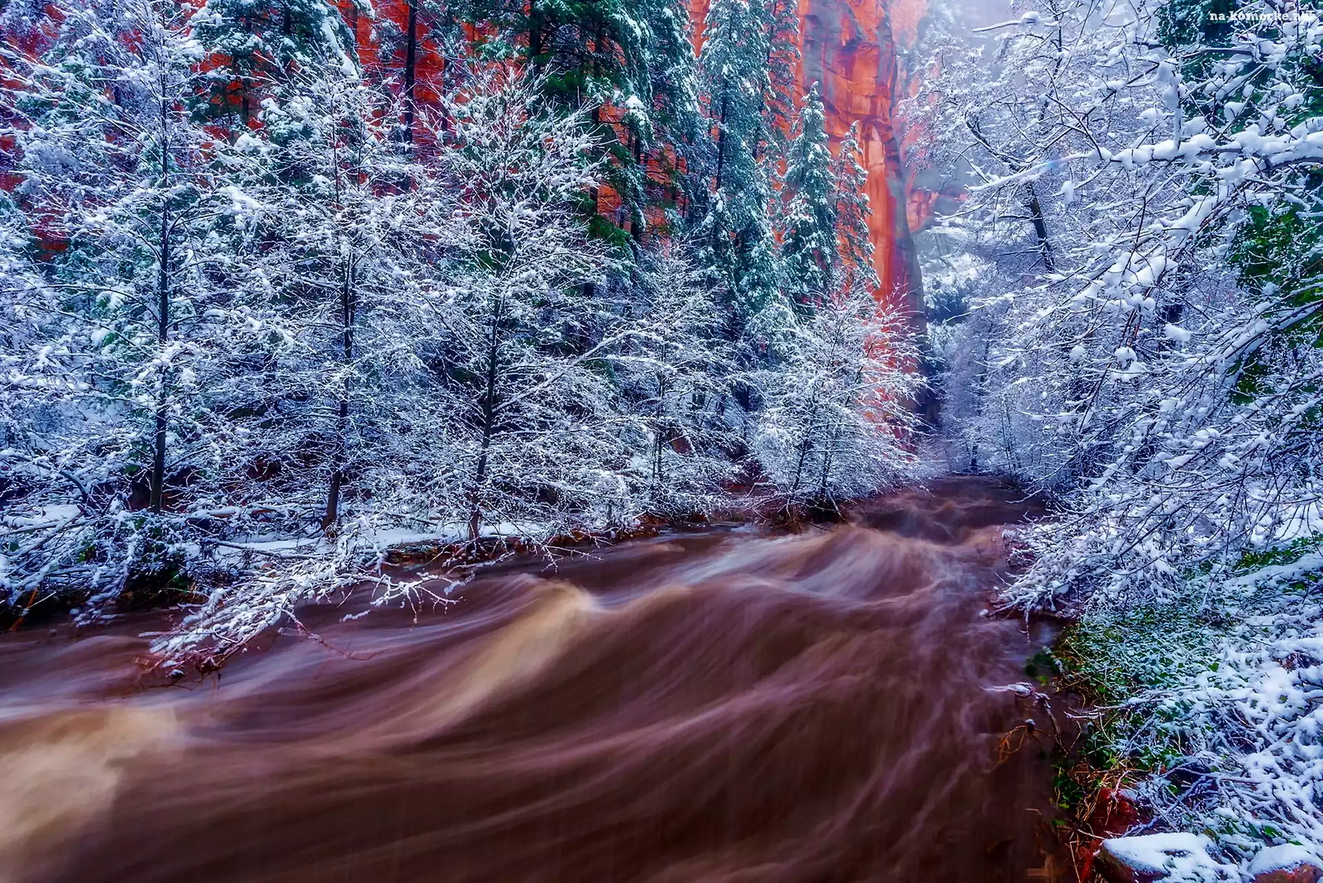 Zima, Rzeka, Las, Skały na Komórkę