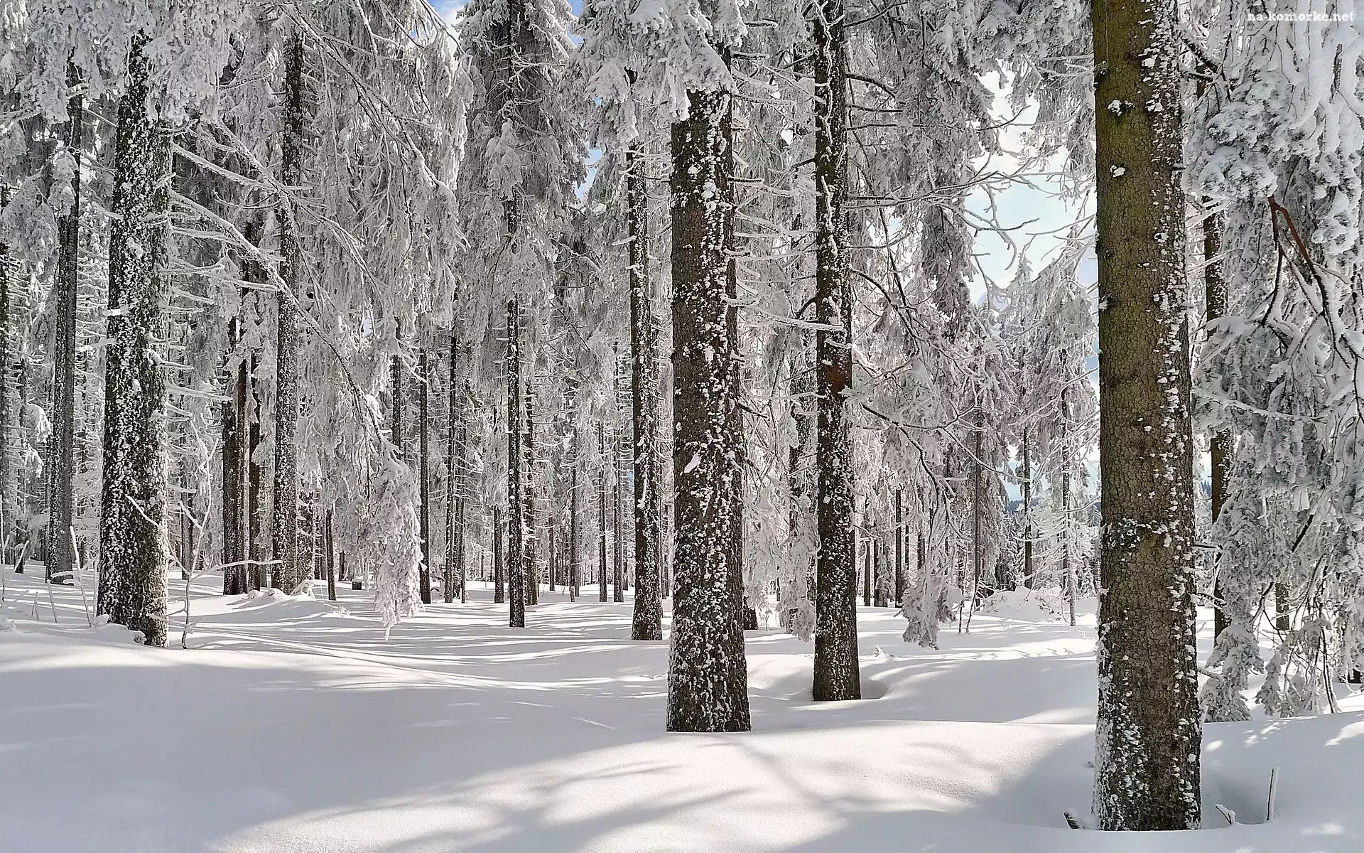 Zima, Światło, Las, Przebijające na Komórkę