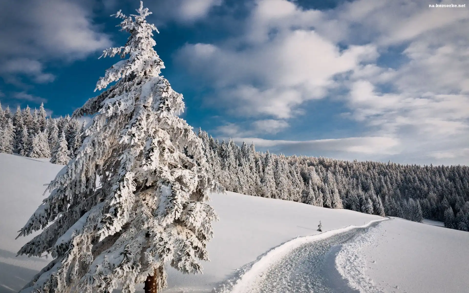 Zima, Świerki, Las, Droga na Komórkę