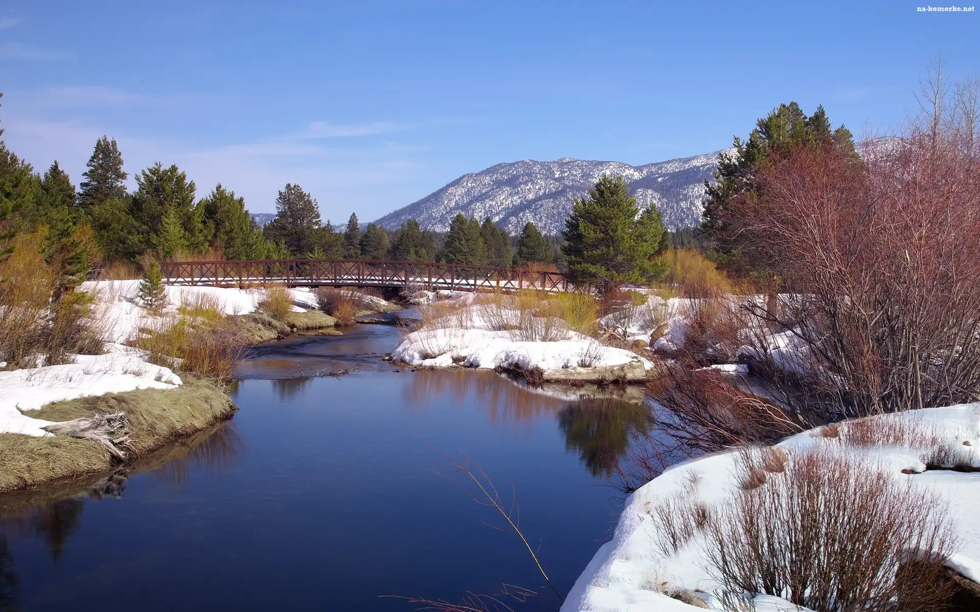 Zima, Rzeka, Most, Lasy, Góry na Komórkę